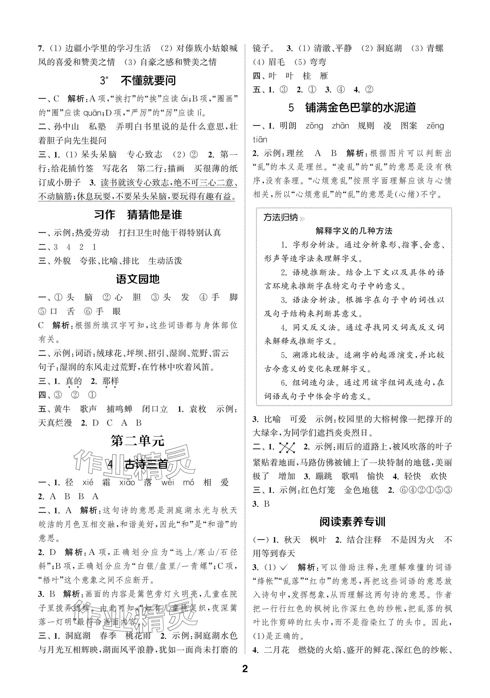 2025年课时作业本闯关练三年级语文上册人教版参考答案第2页