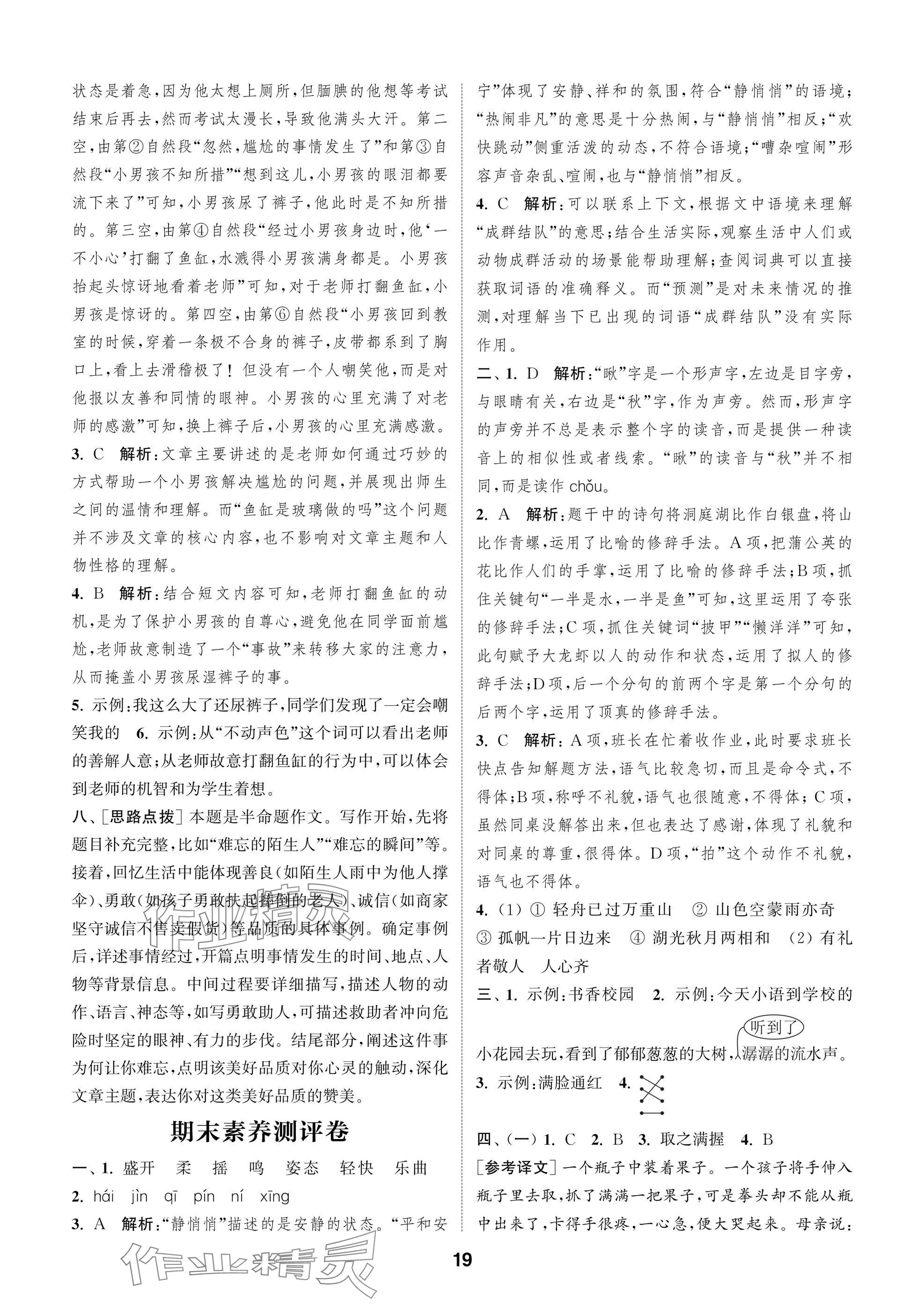 2025年课时作业本闯关练三年级语文上册人教版参考答案第19页