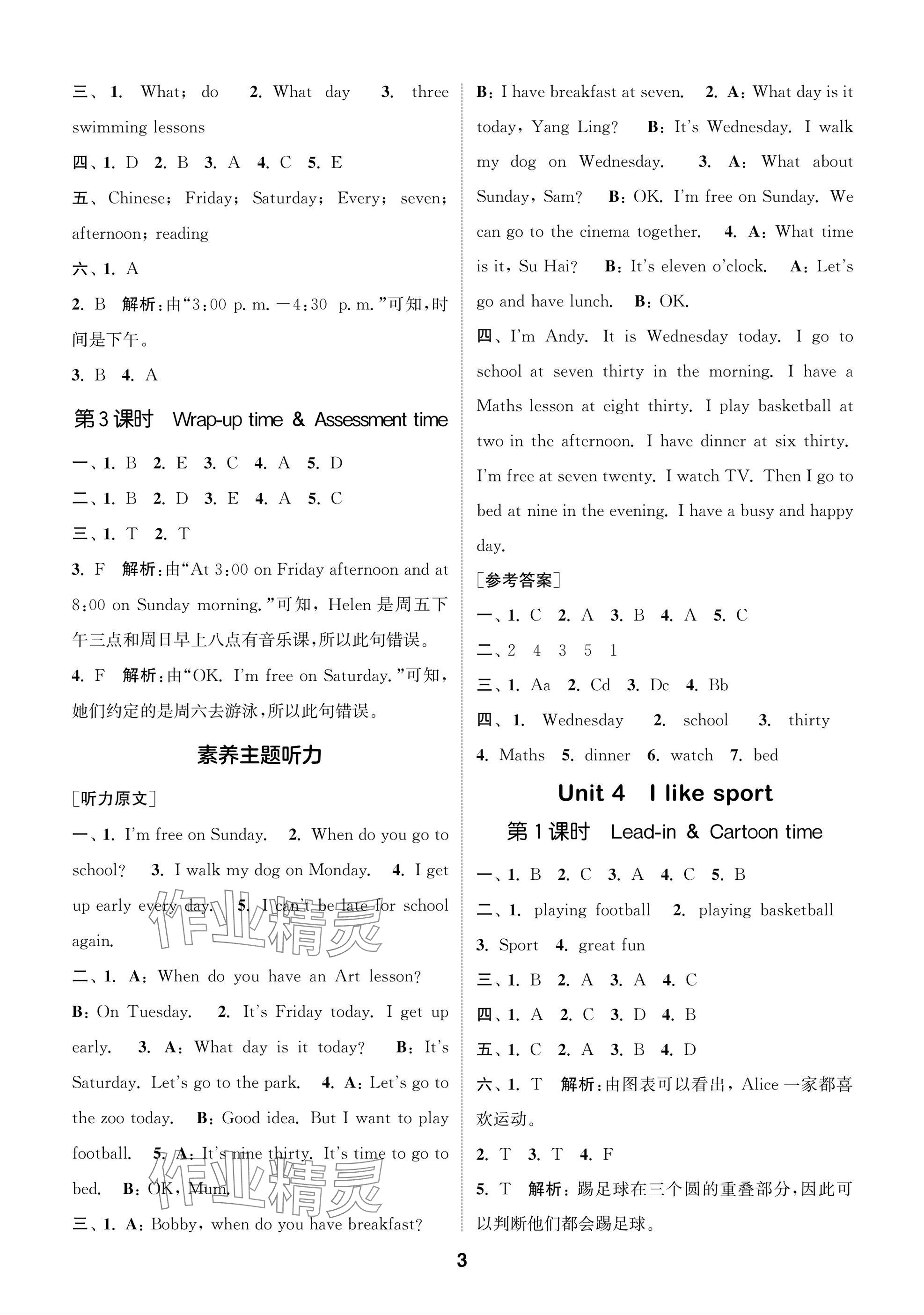 2025年课时作业本闯关练四年级英语上册译林版参考答案第3页