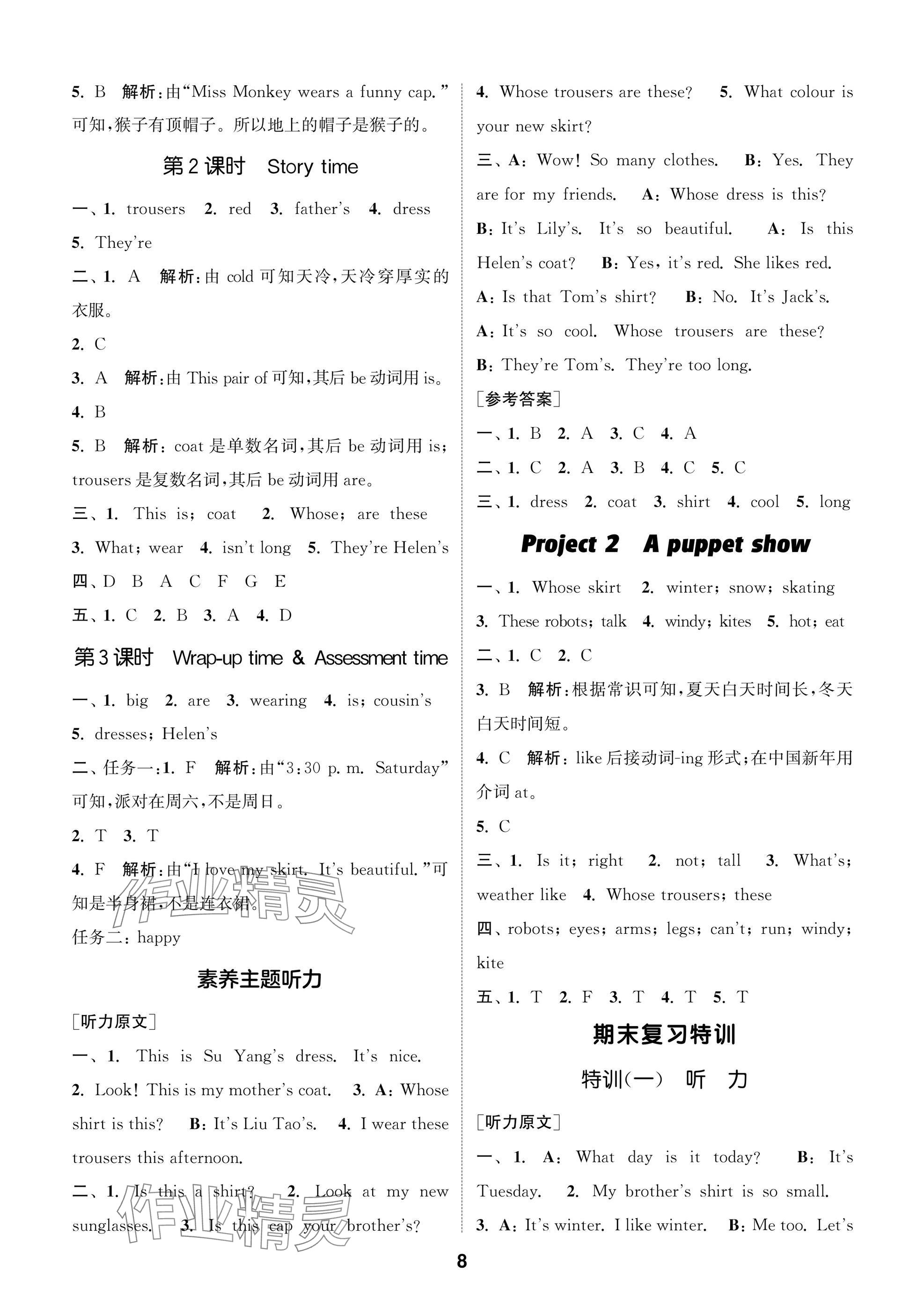 2025年课时作业本闯关练四年级英语上册译林版参考答案第8页
