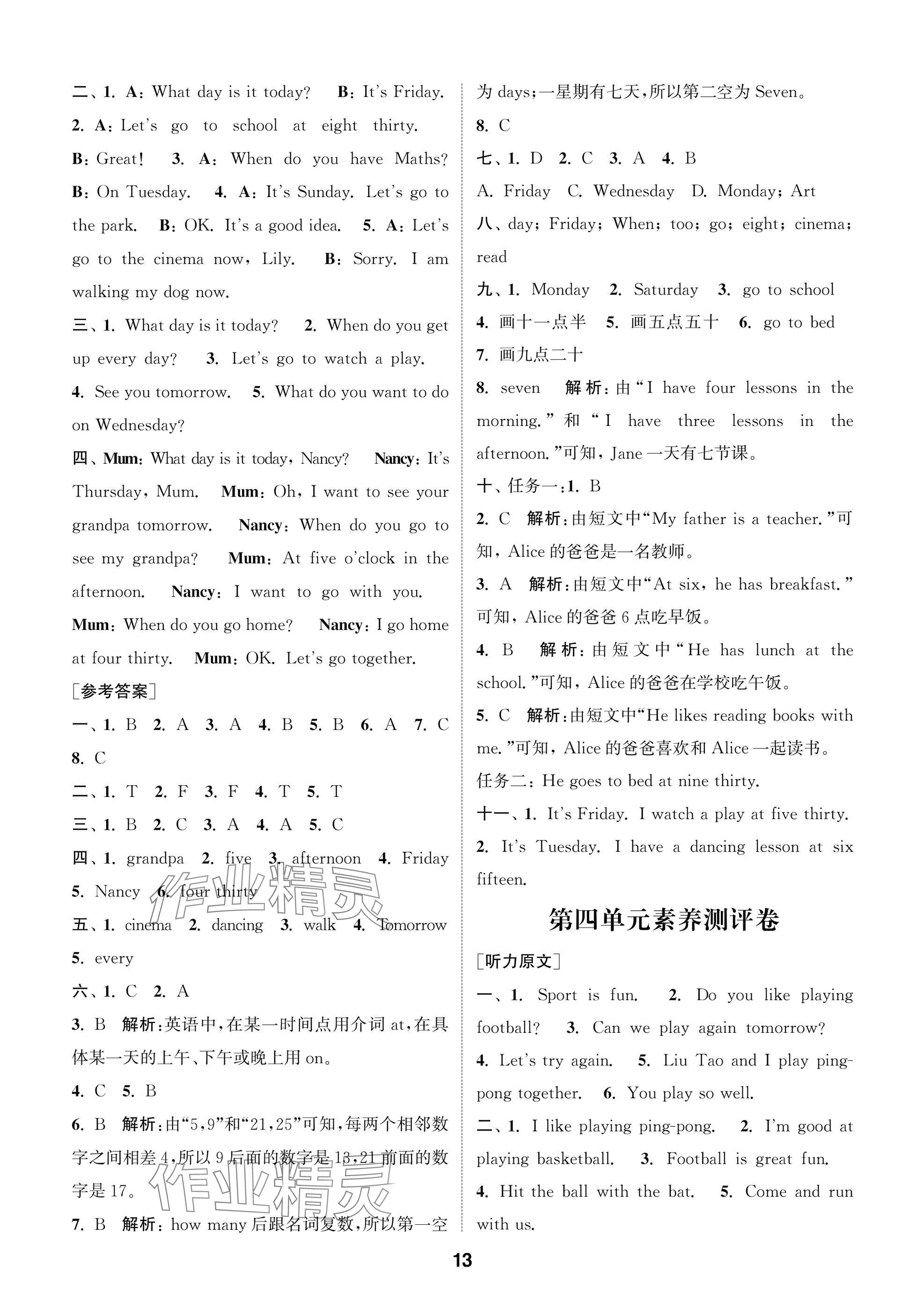 2025年课时作业本闯关练四年级英语上册译林版参考答案第13页
