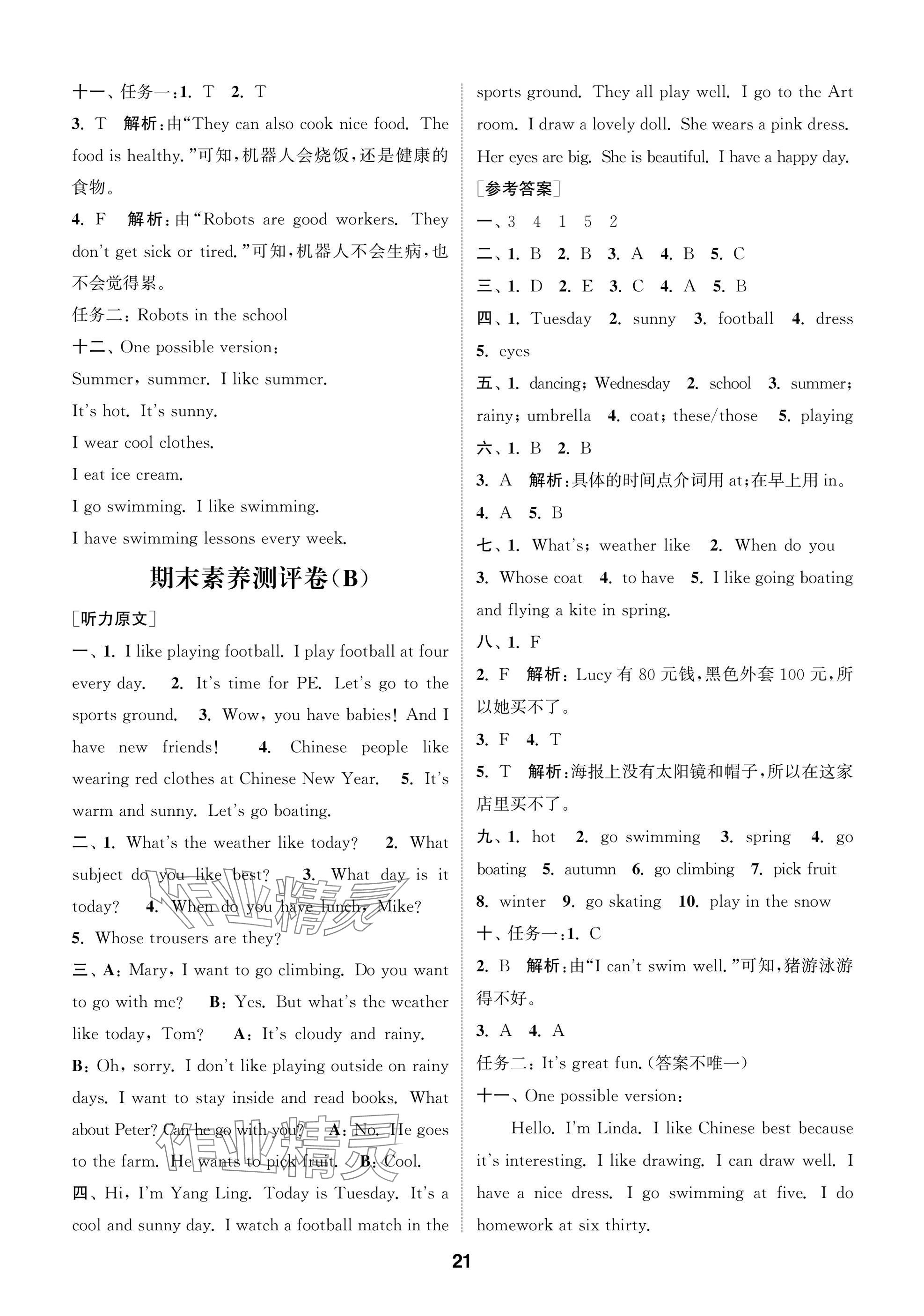 2025年课时作业本闯关练四年级英语上册译林版参考答案第21页
