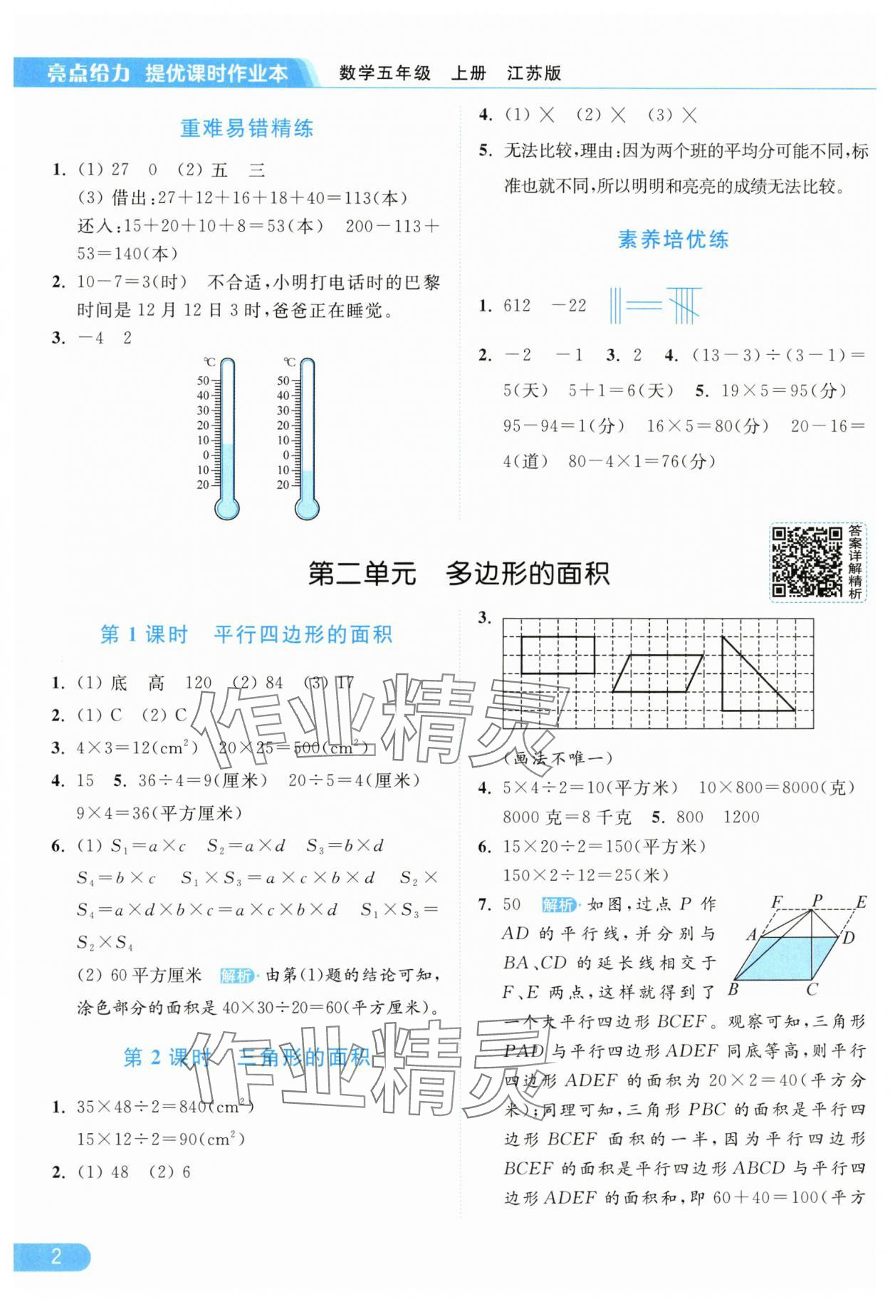 2025年亮点给力提优课时作业本五年级数学上册江苏版参考答案第2页