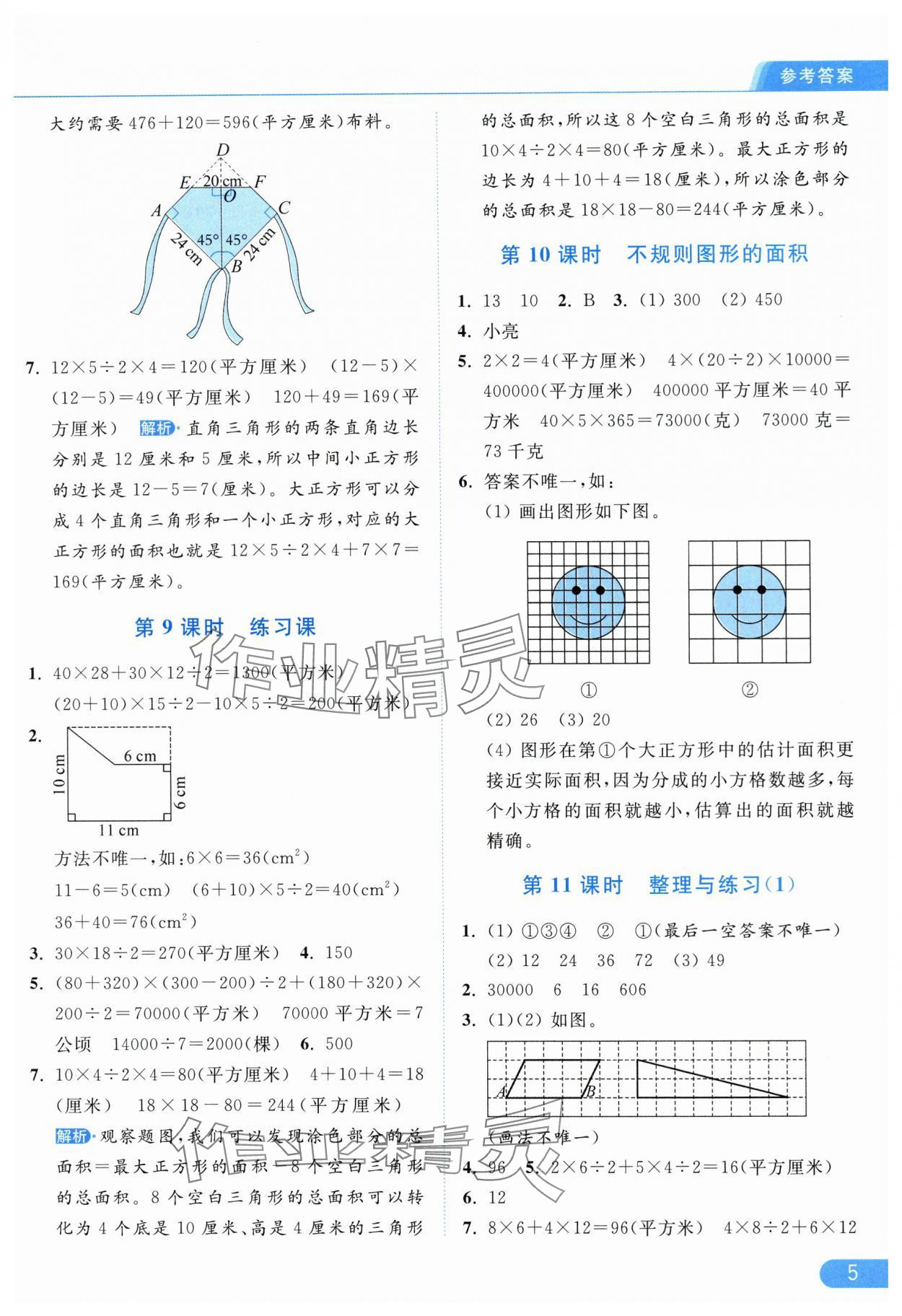 2025年亮点给力提优课时作业本五年级数学上册江苏版参考答案第5页