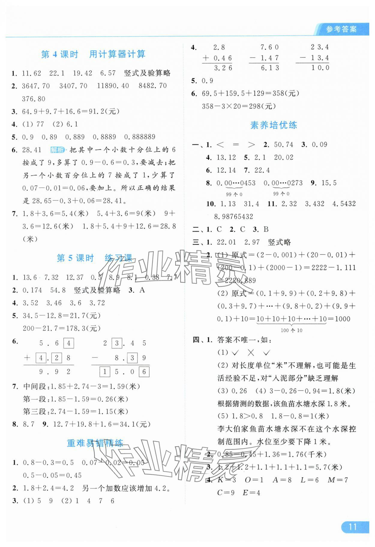 2025年亮点给力提优课时作业本五年级数学上册江苏版参考答案第11页