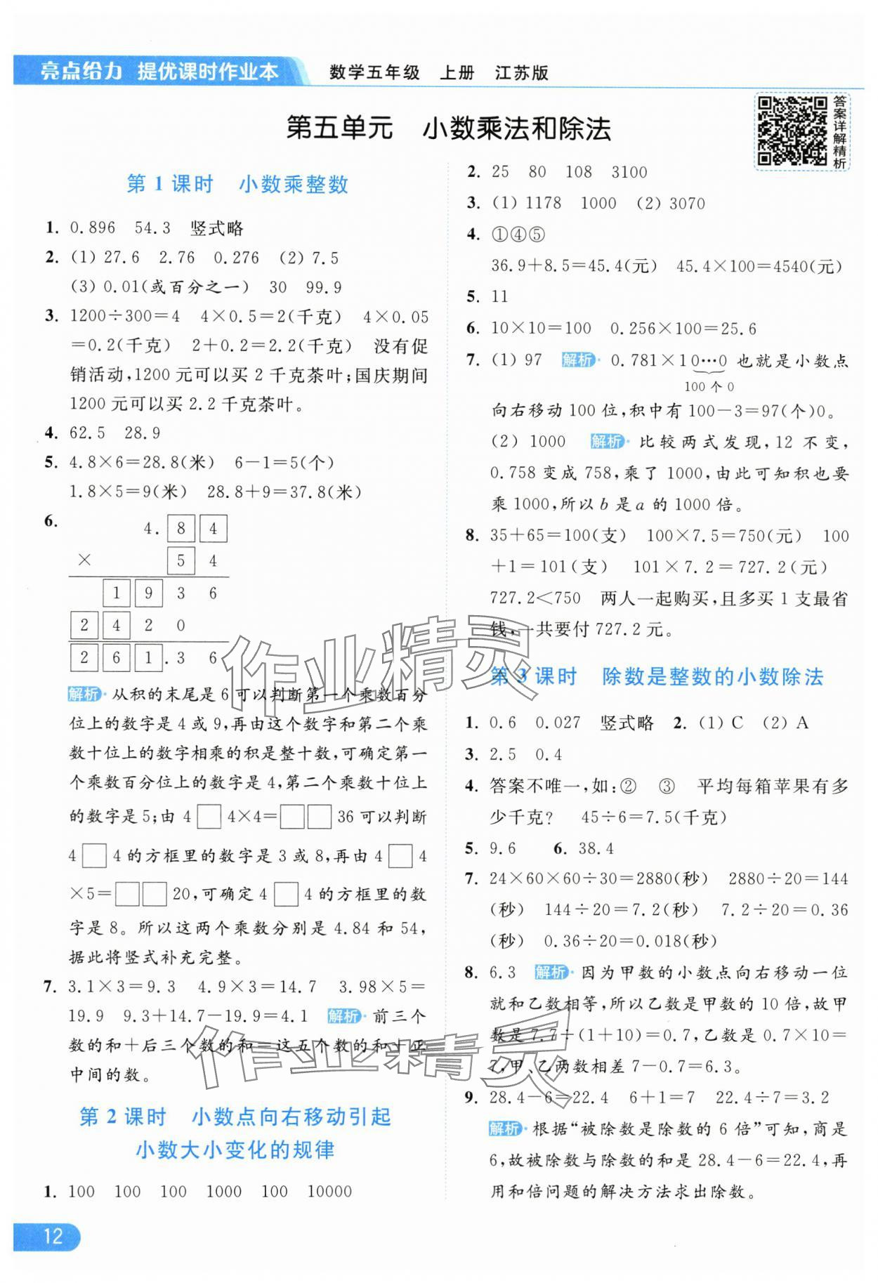 2025年亮点给力提优课时作业本五年级数学上册江苏版参考答案第12页