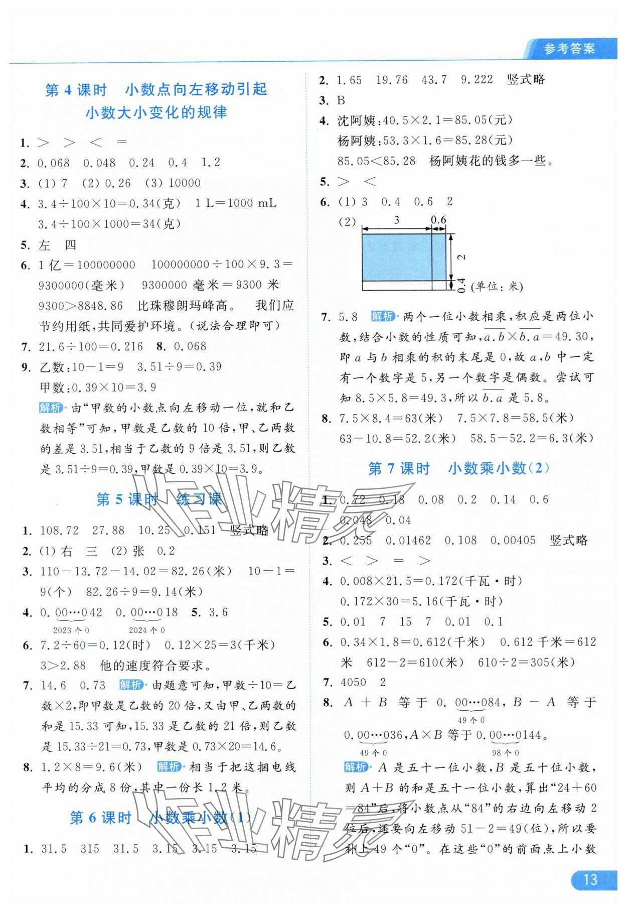 2025年亮点给力提优课时作业本五年级数学上册江苏版参考答案第13页