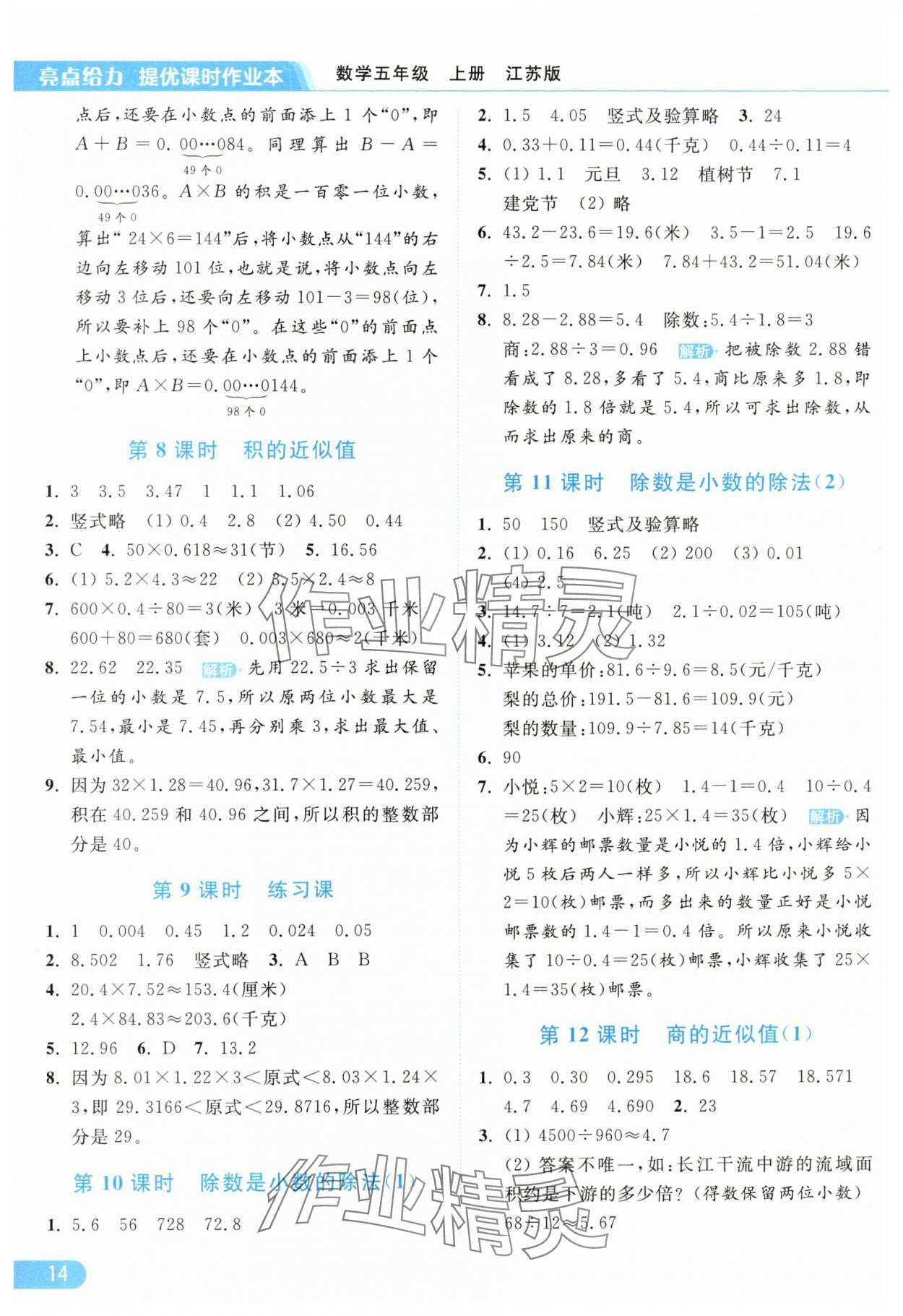 2025年亮点给力提优课时作业本五年级数学上册江苏版参考答案第14页