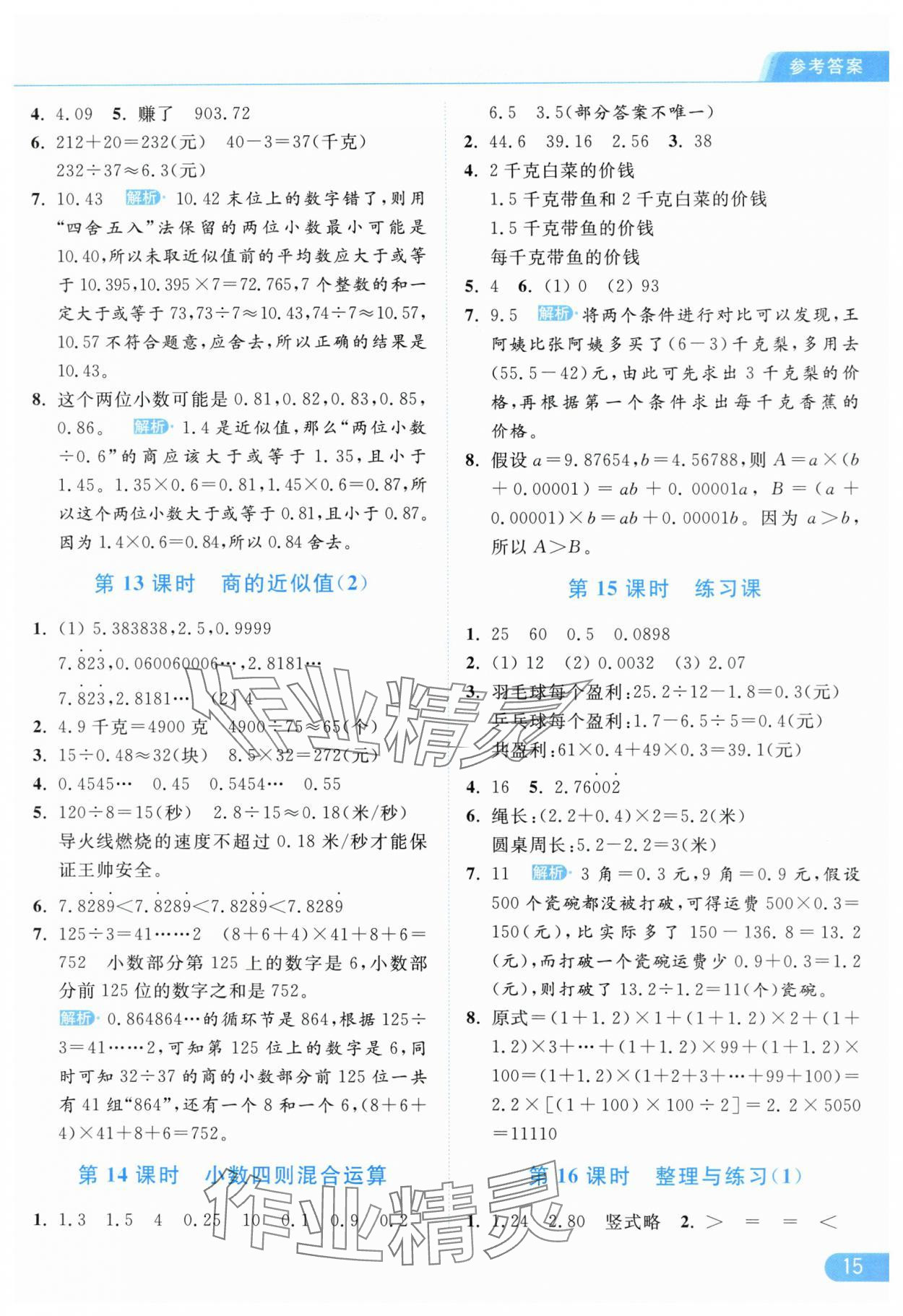 2025年亮点给力提优课时作业本五年级数学上册江苏版参考答案第15页