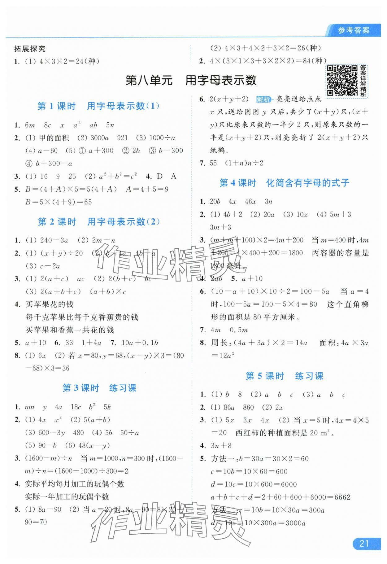 2025年亮点给力提优课时作业本五年级数学上册江苏版参考答案第21页