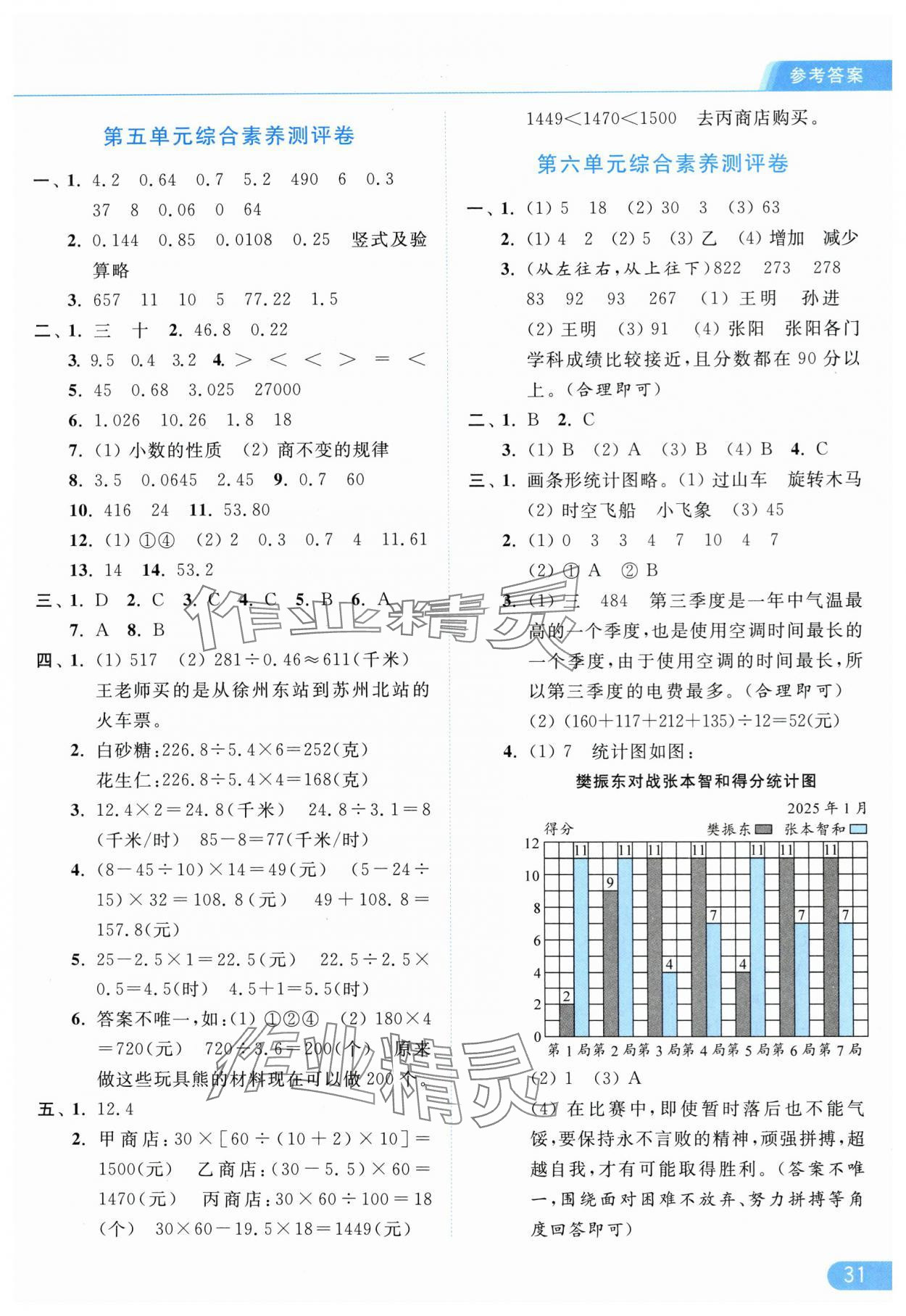 2025年亮点给力提优课时作业本五年级数学上册江苏版参考答案第31页