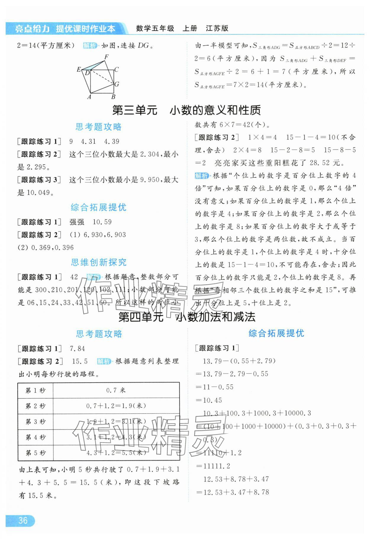 2025年亮点给力提优课时作业本五年级数学上册江苏版参考答案第36页