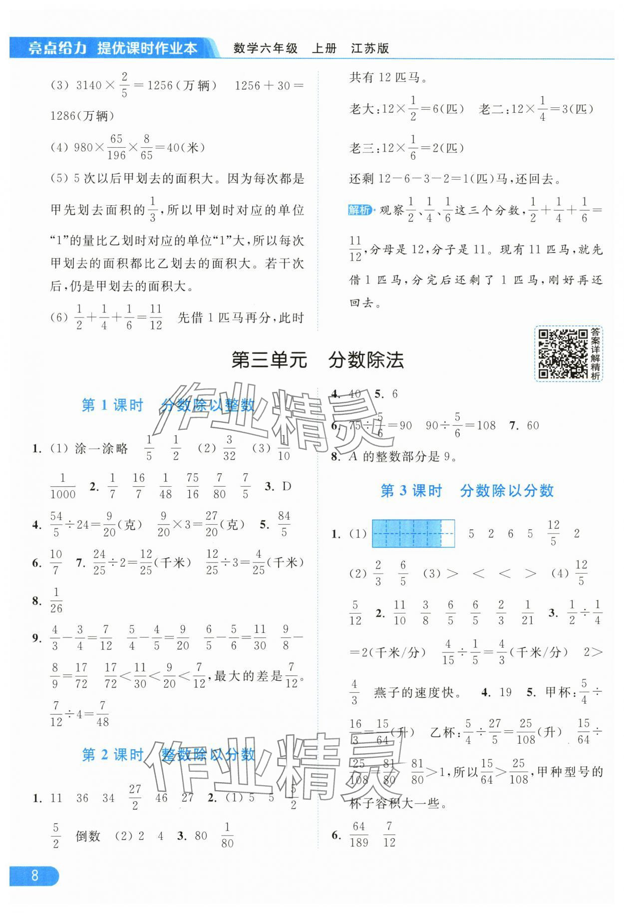 2025年亮点给力提优课时作业本六年级数学上册江苏版参考答案第8页