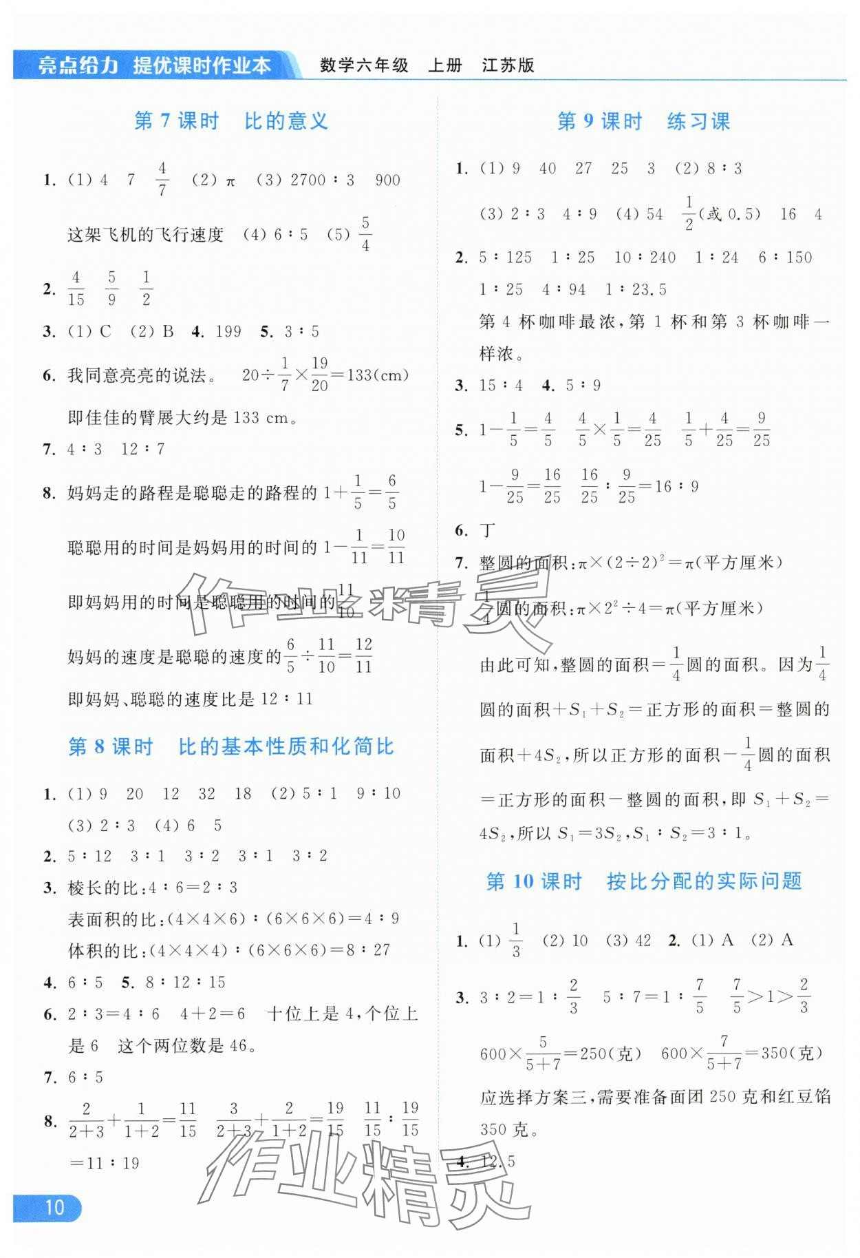 2025年亮点给力提优课时作业本六年级数学上册江苏版参考答案第10页