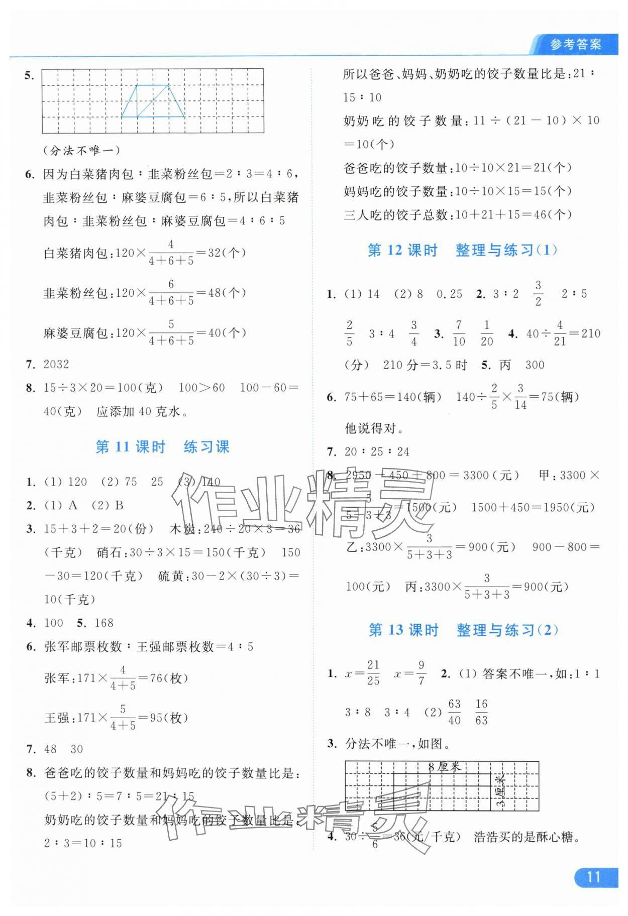 2025年亮点给力提优课时作业本六年级数学上册江苏版参考答案第11页