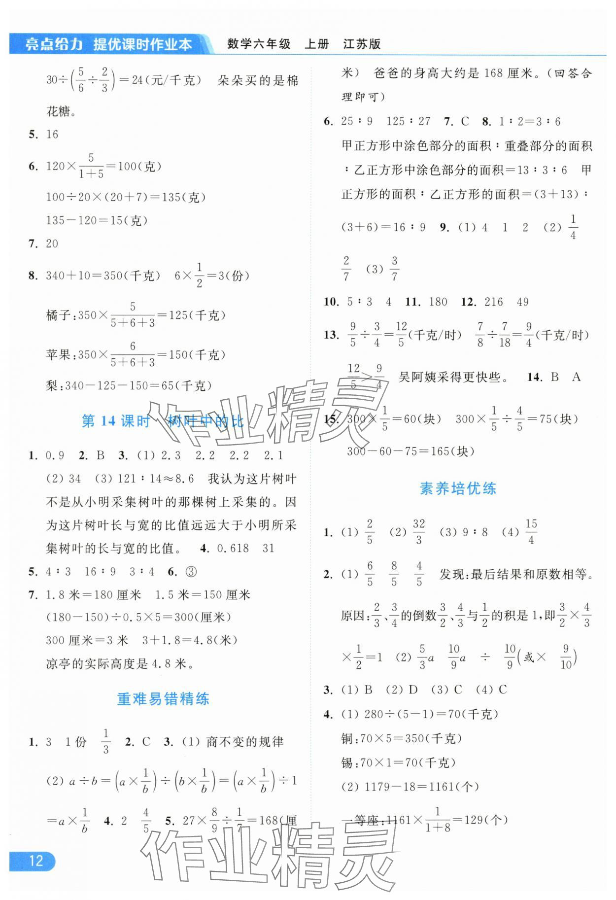 2025年亮点给力提优课时作业本六年级数学上册江苏版参考答案第12页
