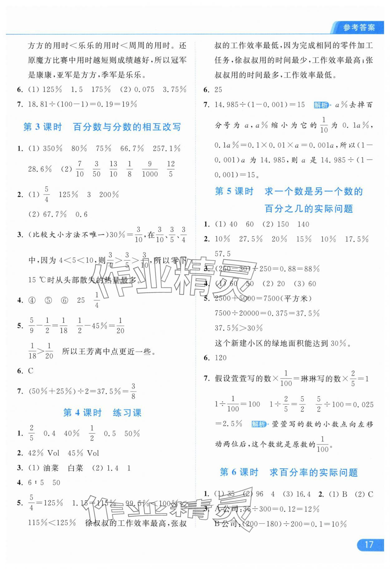 2025年亮点给力提优课时作业本六年级数学上册江苏版参考答案第17页