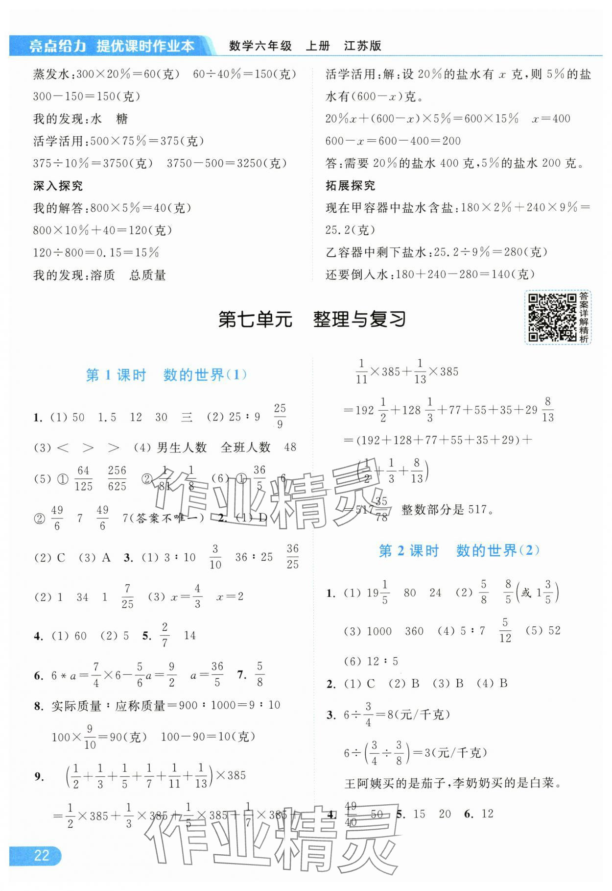 2025年亮点给力提优课时作业本六年级数学上册江苏版参考答案第22页