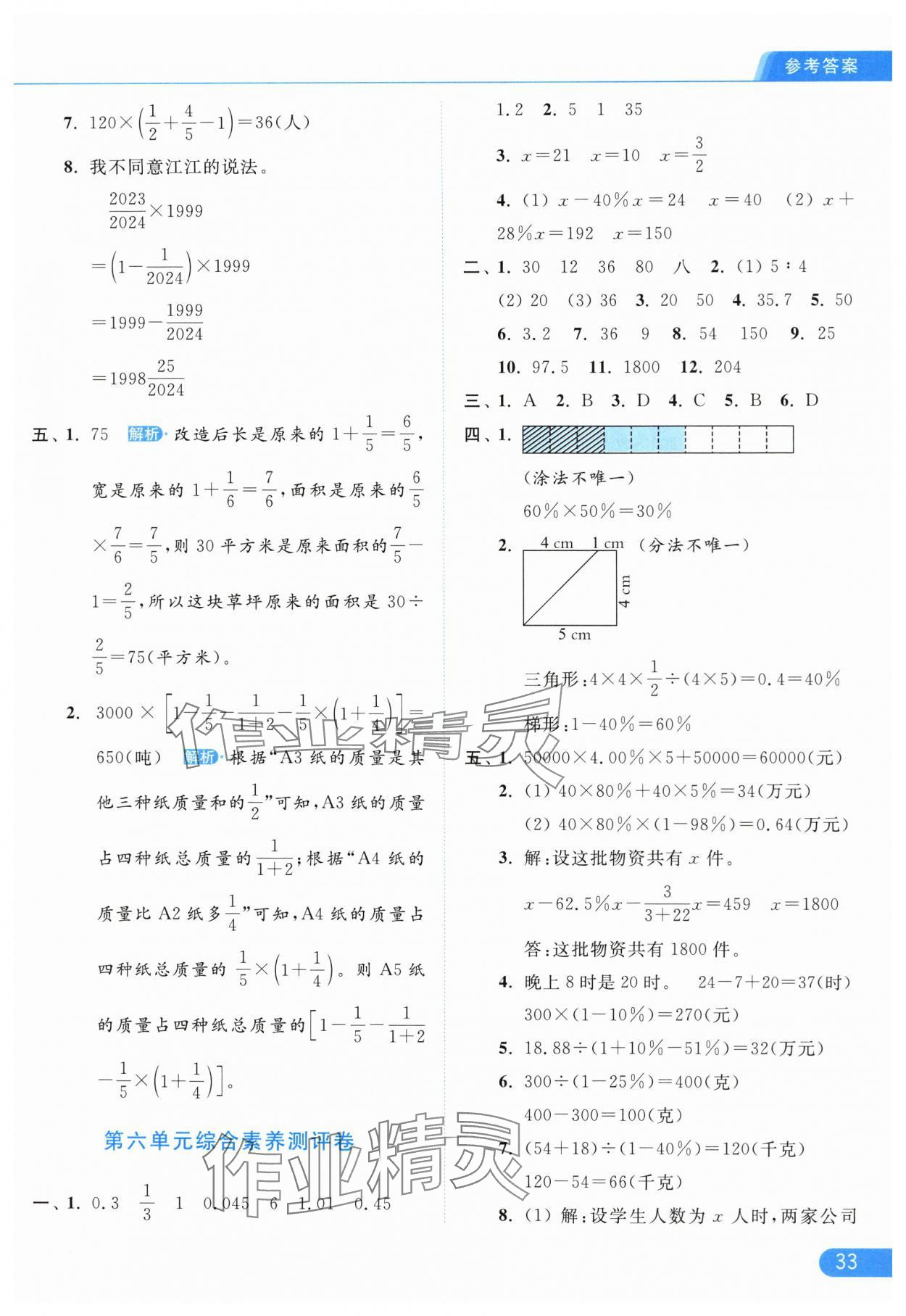 2025年亮点给力提优课时作业本六年级数学上册江苏版参考答案第33页