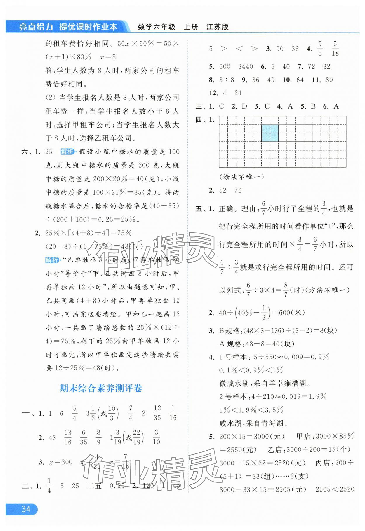2025年亮点给力提优课时作业本六年级数学上册江苏版参考答案第34页