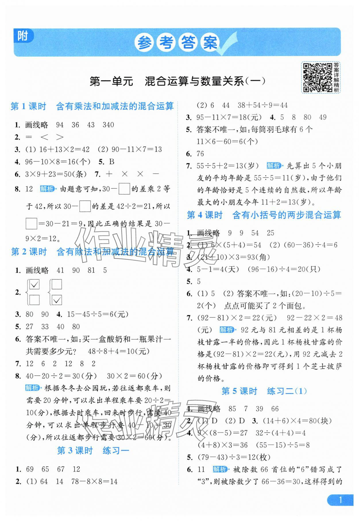 2025年亮点给力提优课时作业本三年级数学上册江苏版参考答案第1页