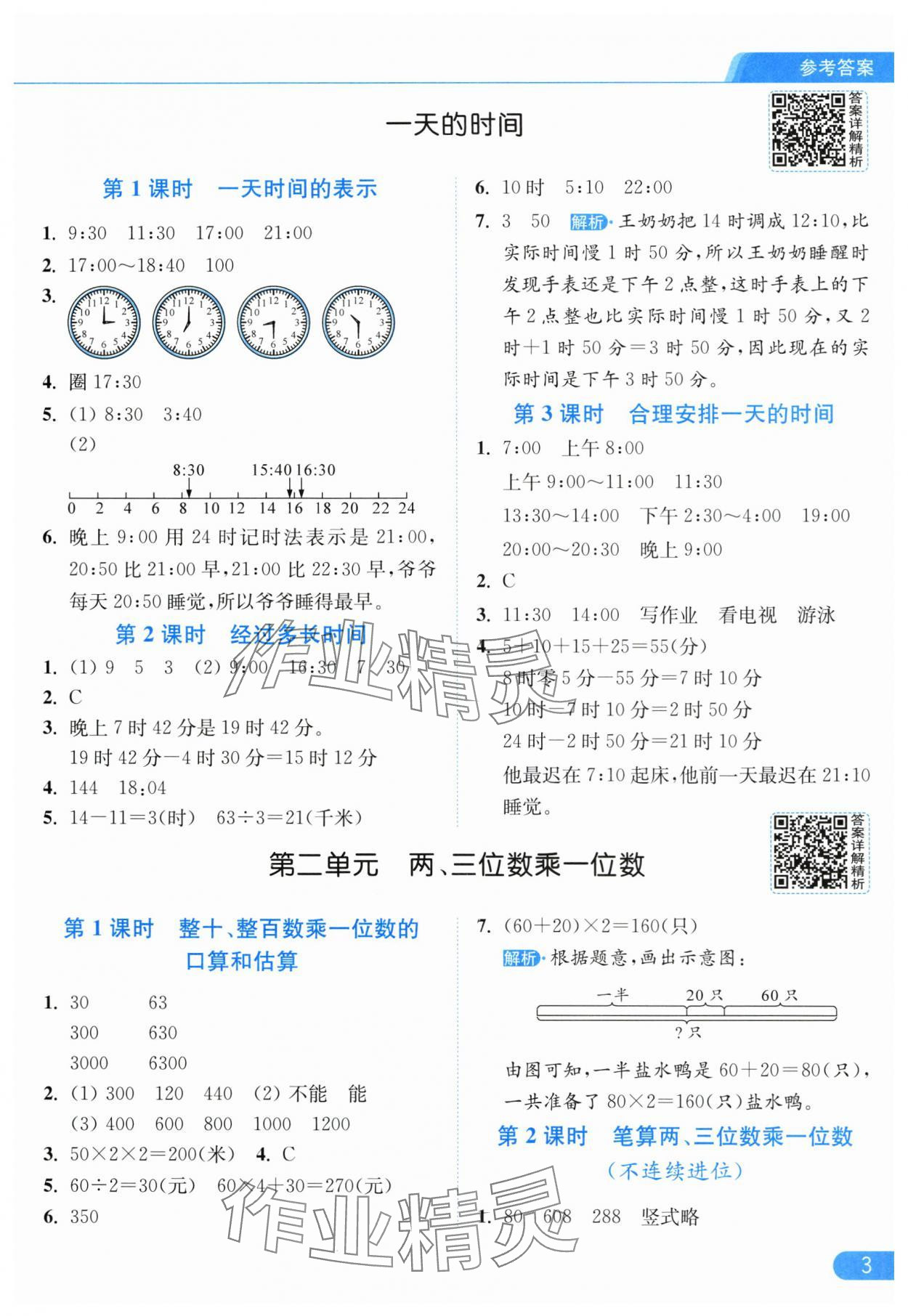 2025年亮点给力提优课时作业本三年级数学上册江苏版参考答案第3页