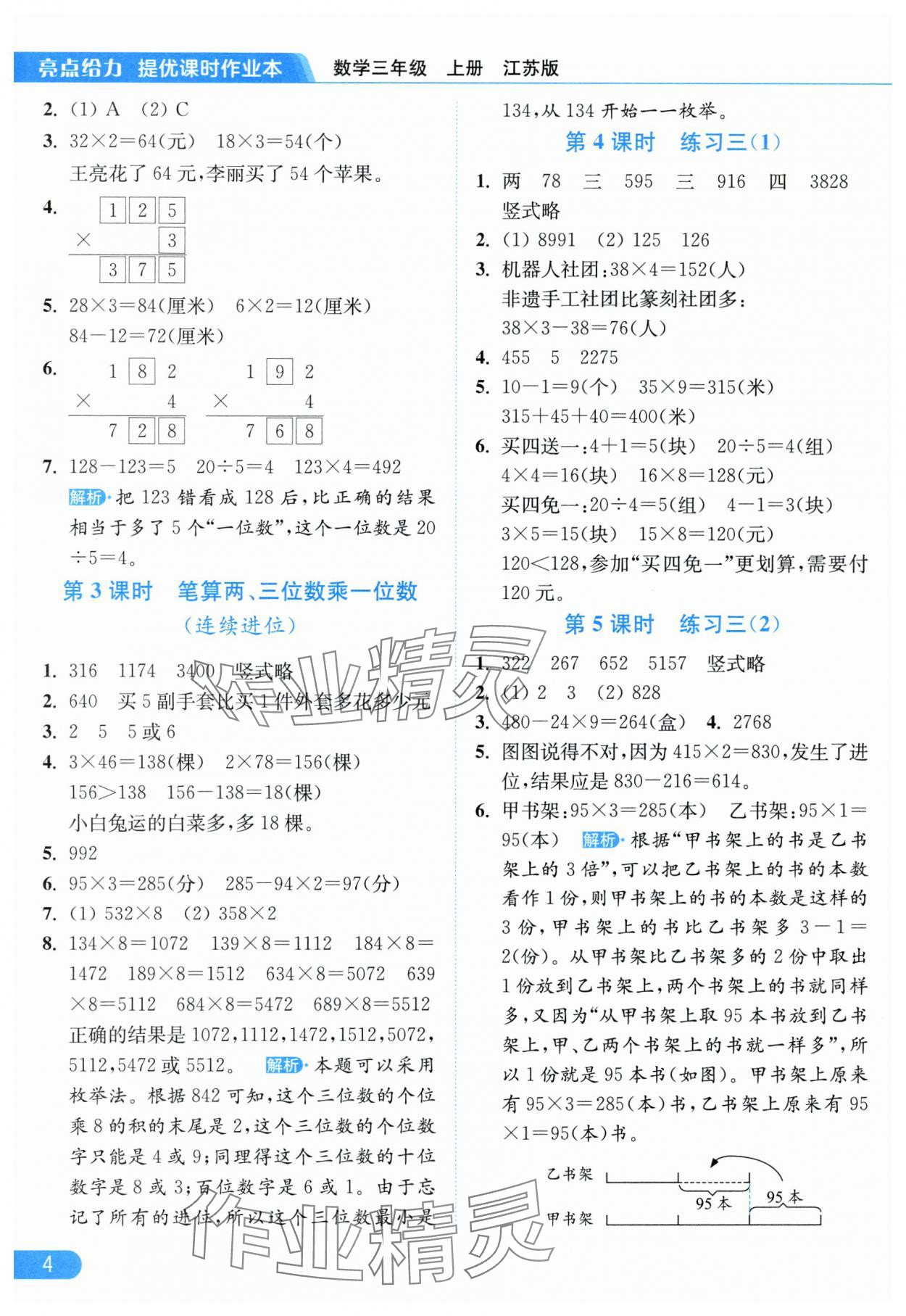 2025年亮点给力提优课时作业本三年级数学上册江苏版参考答案第4页