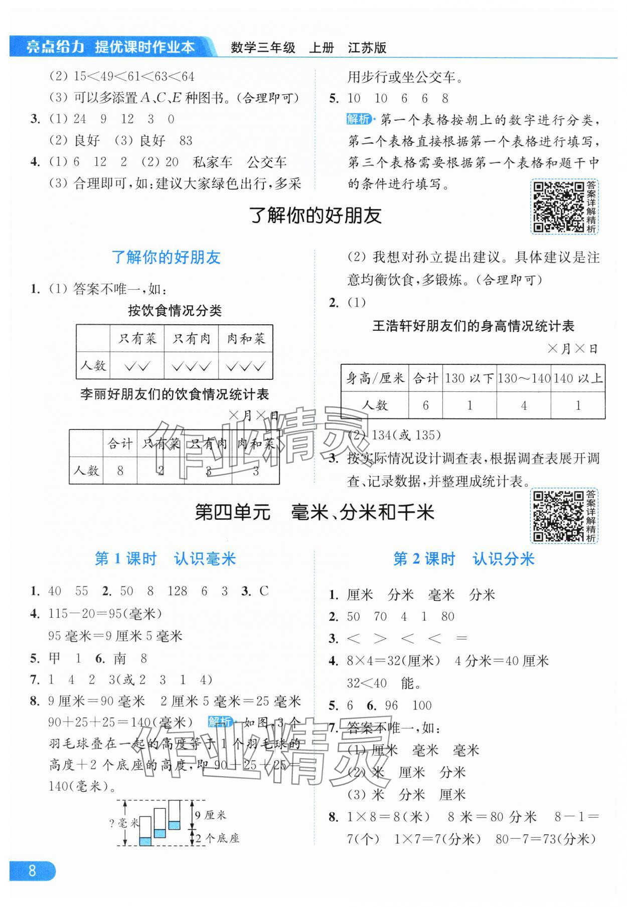2025年亮点给力提优课时作业本三年级数学上册江苏版参考答案第8页
