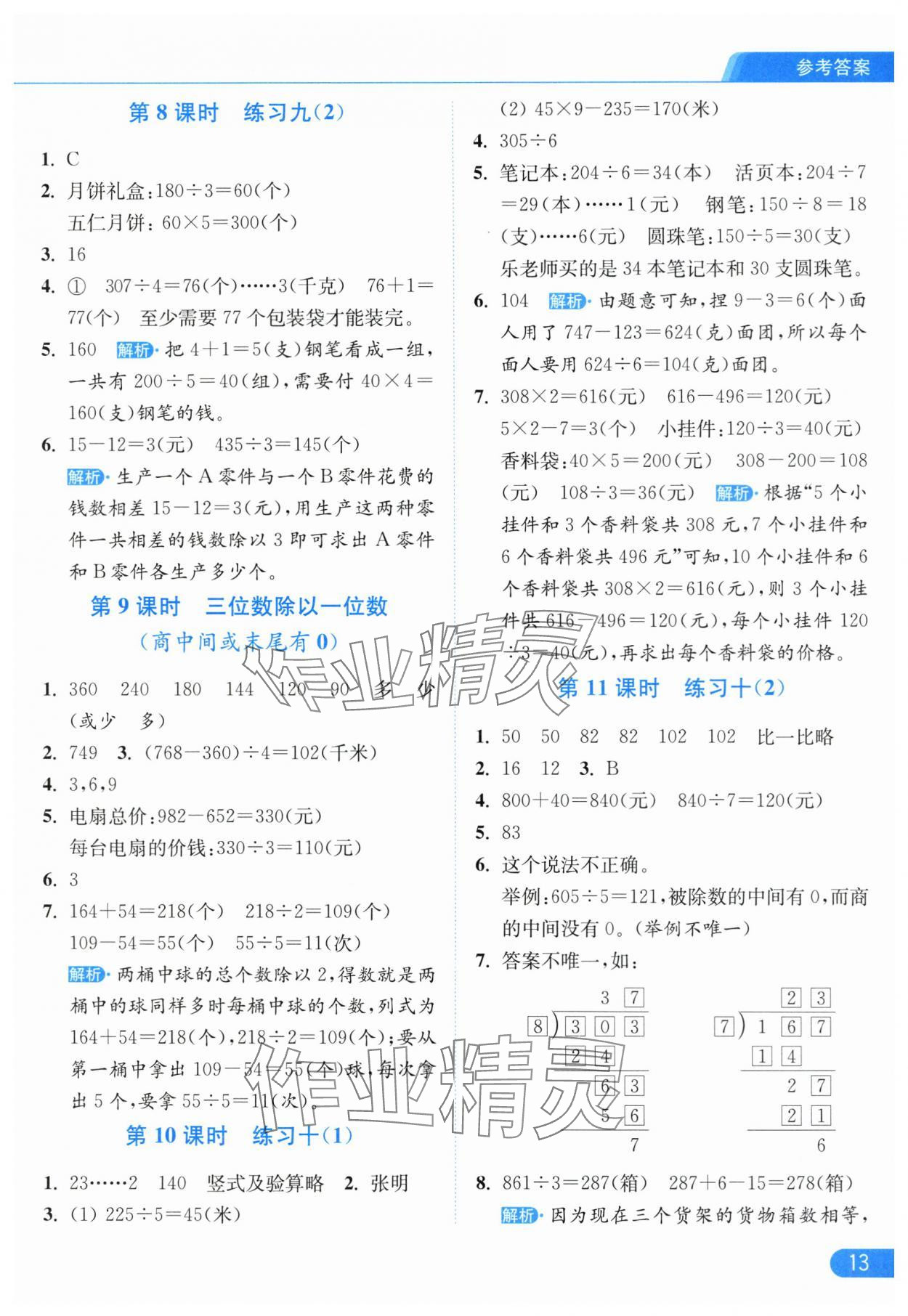 2025年亮点给力提优课时作业本三年级数学上册江苏版参考答案第13页