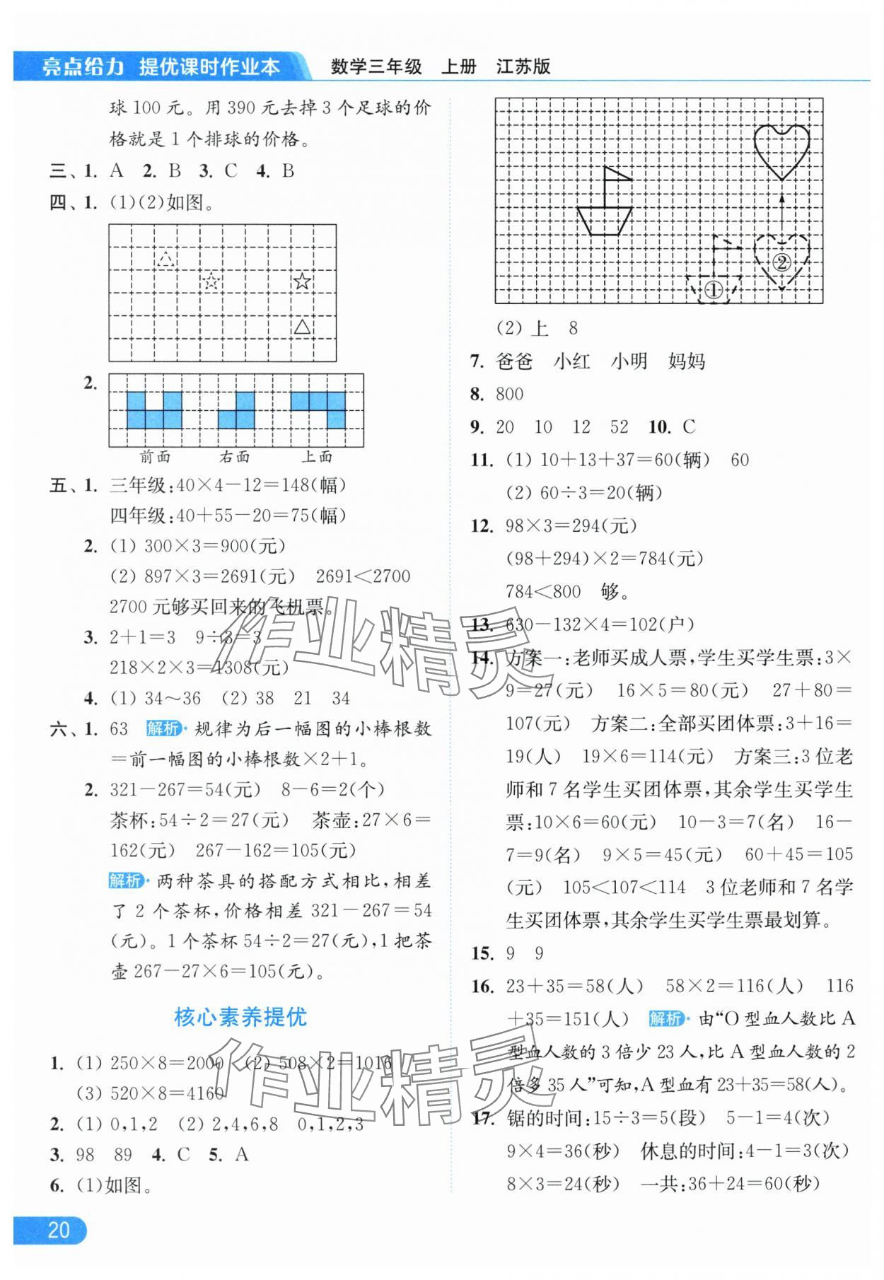 2025年亮点给力提优课时作业本三年级数学上册江苏版参考答案第20页