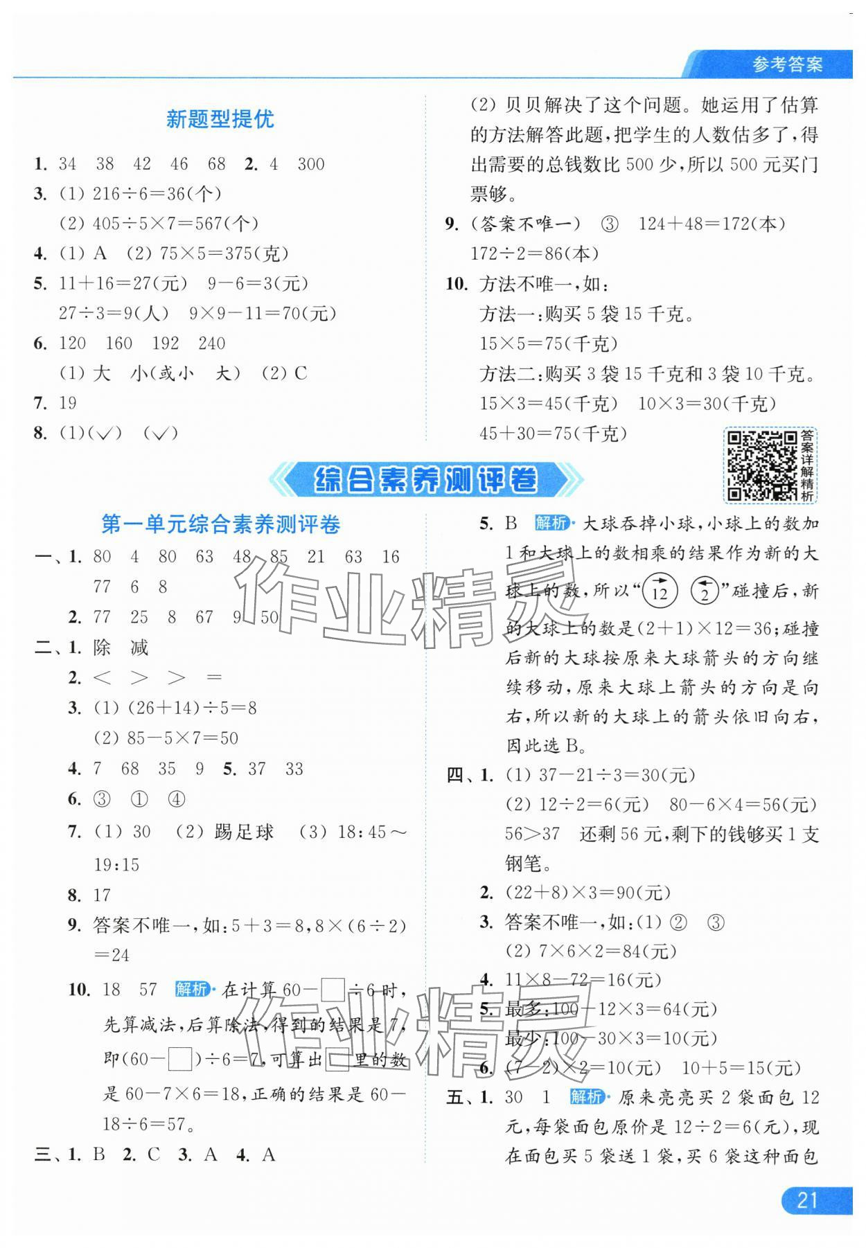 2025年亮点给力提优课时作业本三年级数学上册江苏版参考答案第21页