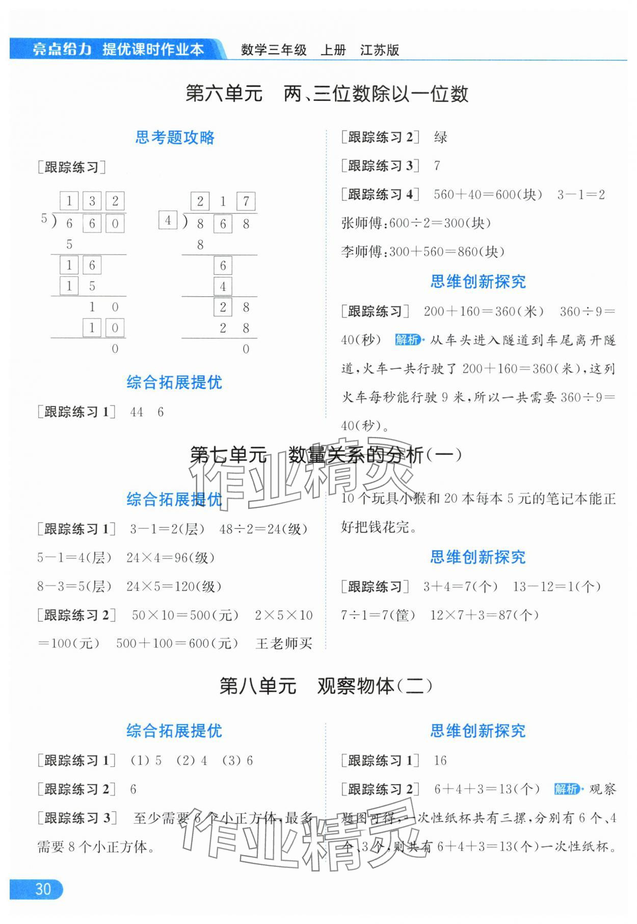 2025年亮点给力提优课时作业本三年级数学上册江苏版参考答案第30页