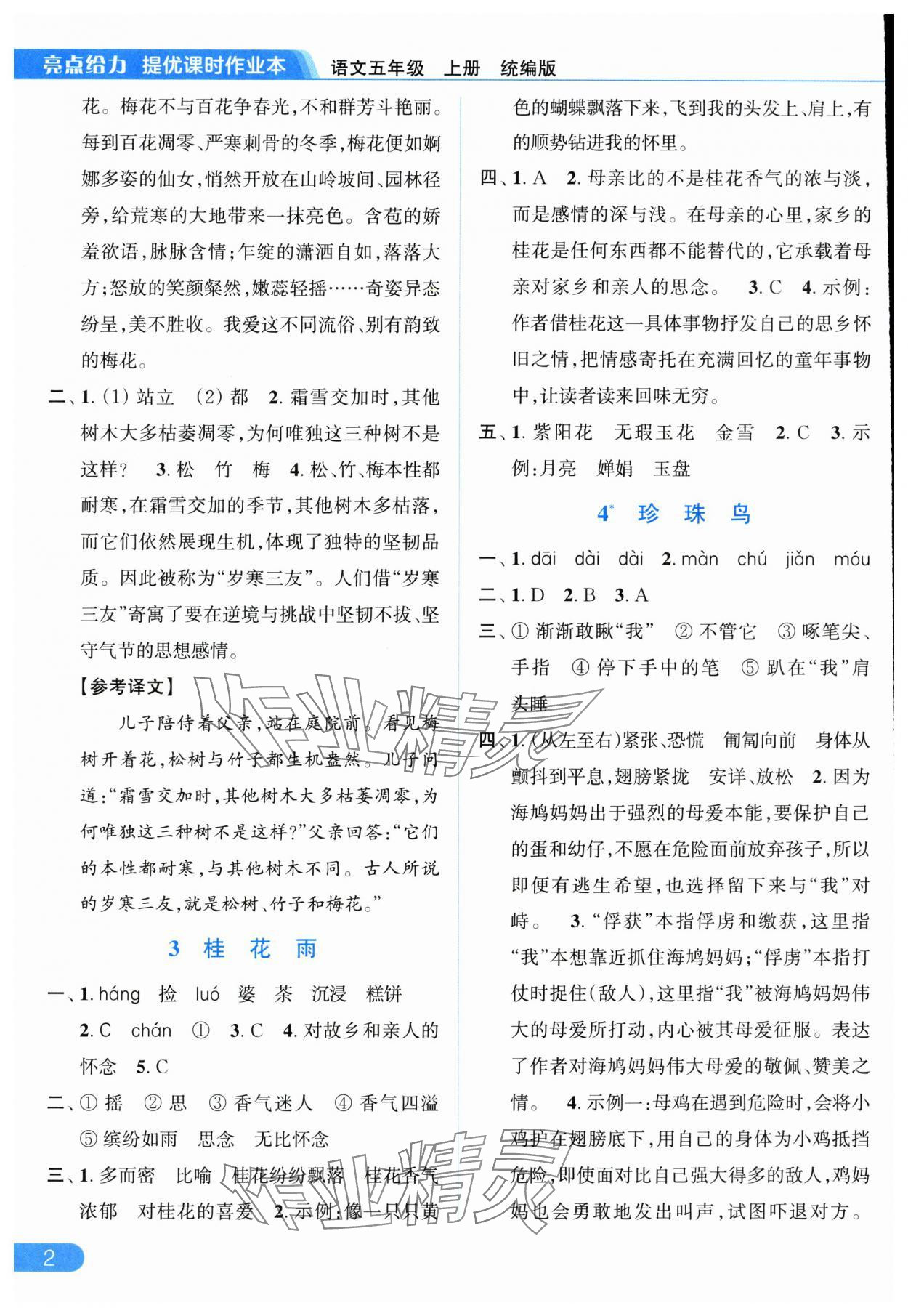 2025年亮点给力提优课时作业本五年级语文上册统编版参考答案第2页