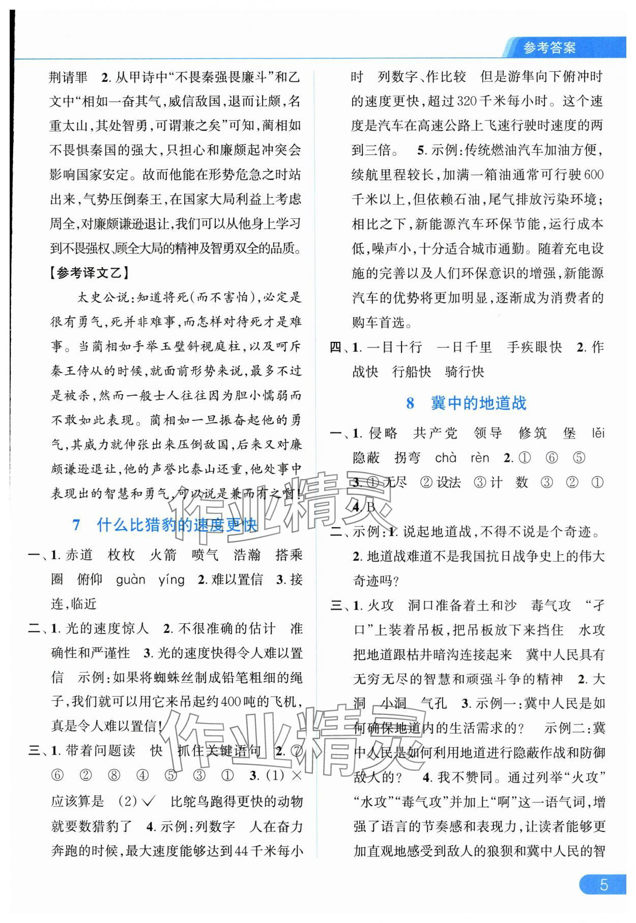 2025年亮点给力提优课时作业本五年级语文上册统编版参考答案第5页