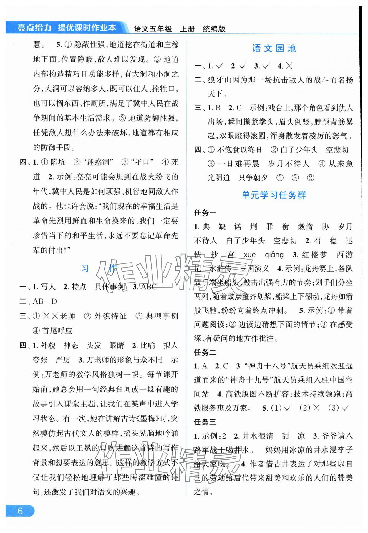 2025年亮点给力提优课时作业本五年级语文上册统编版参考答案第6页