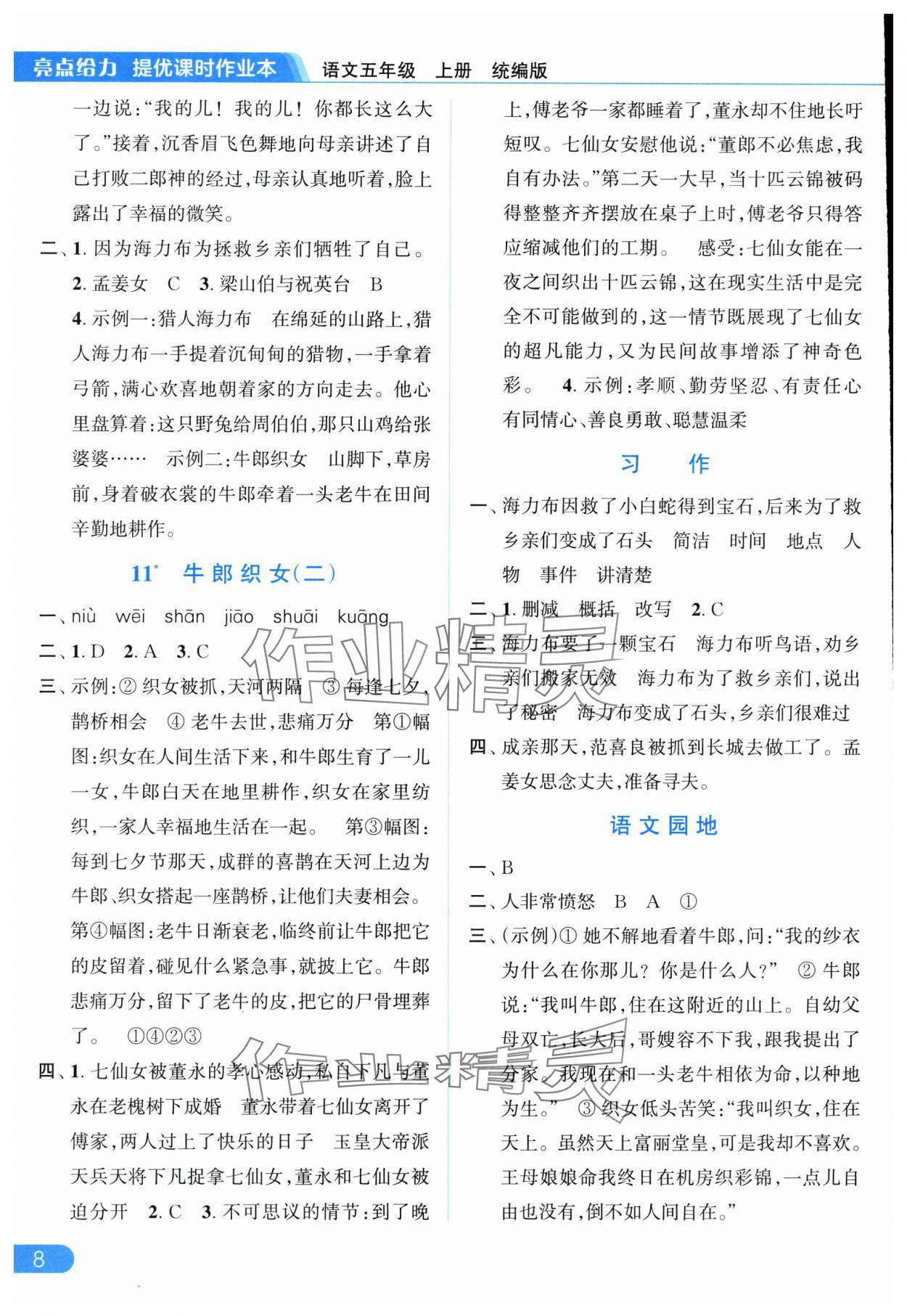 2025年亮点给力提优课时作业本五年级语文上册统编版参考答案第8页