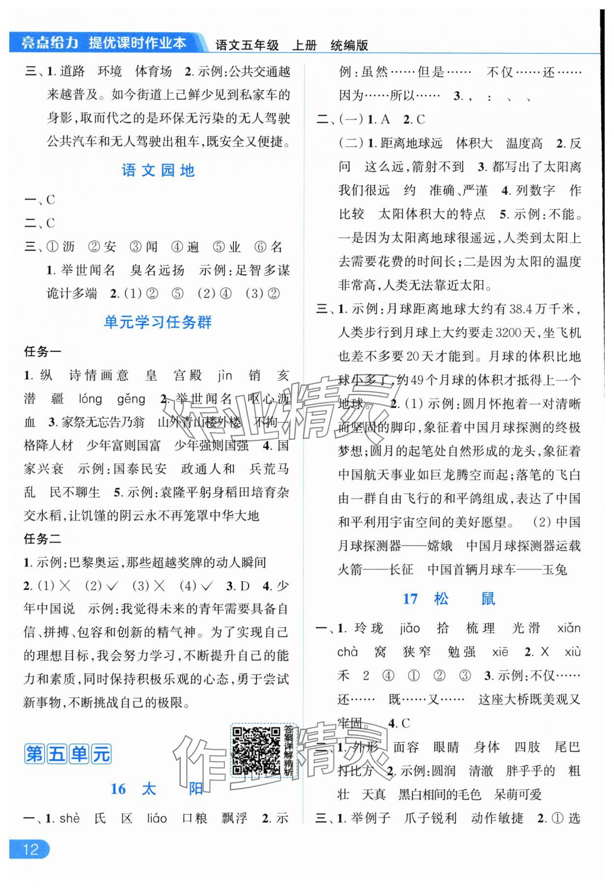 2025年亮点给力提优课时作业本五年级语文上册统编版参考答案第12页
