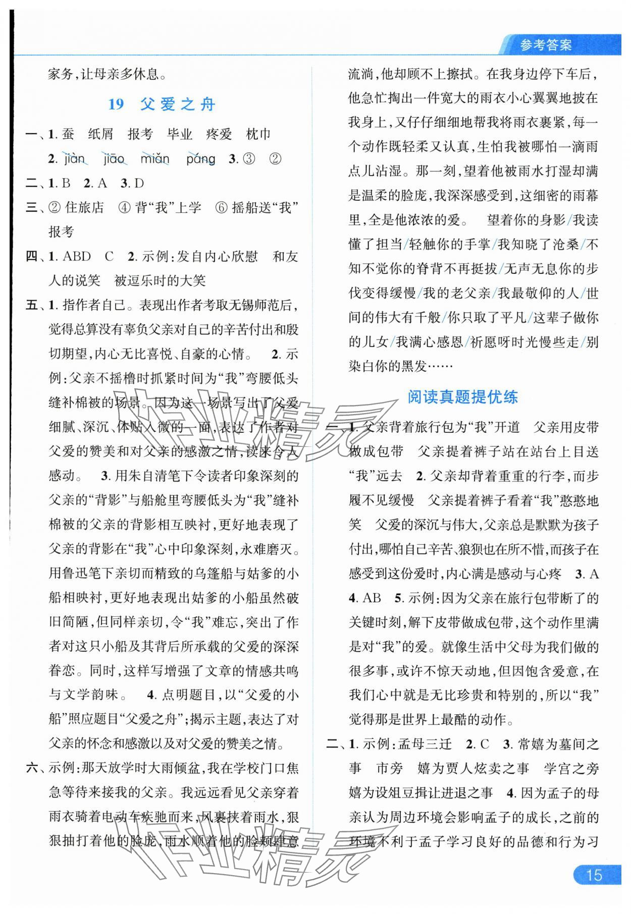 2025年亮点给力提优课时作业本五年级语文上册统编版参考答案第15页
