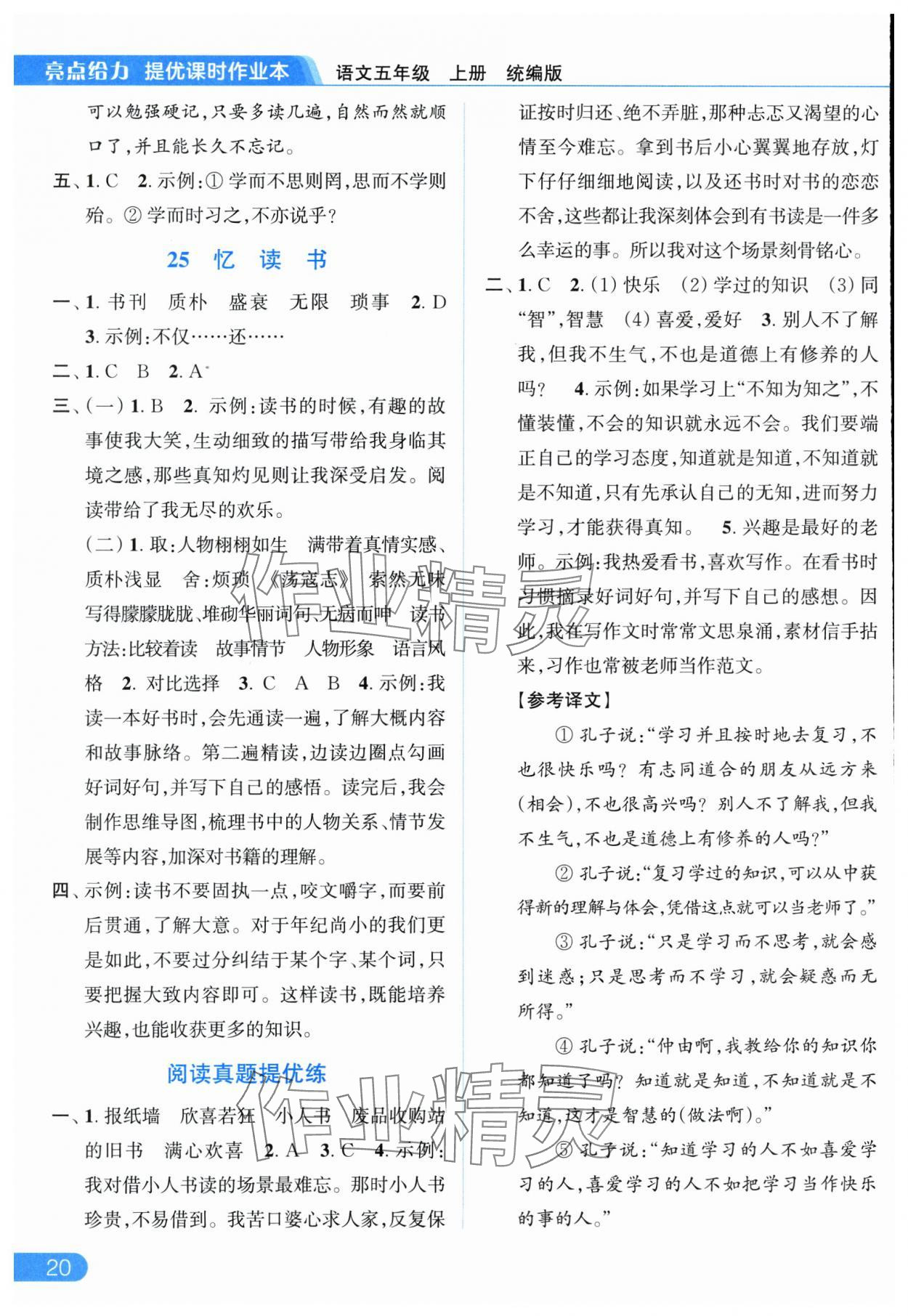 2025年亮点给力提优课时作业本五年级语文上册统编版参考答案第20页