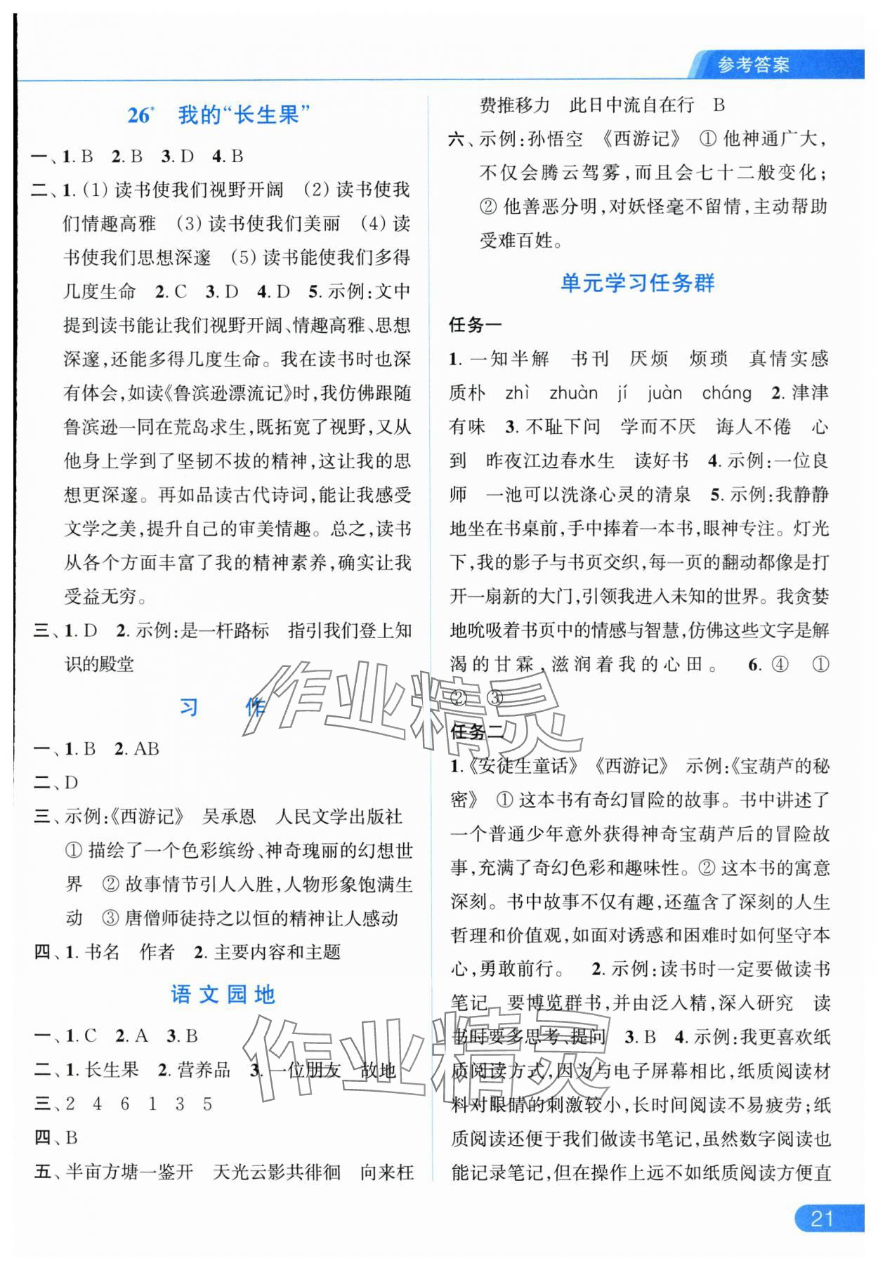 2025年亮点给力提优课时作业本五年级语文上册统编版参考答案第21页