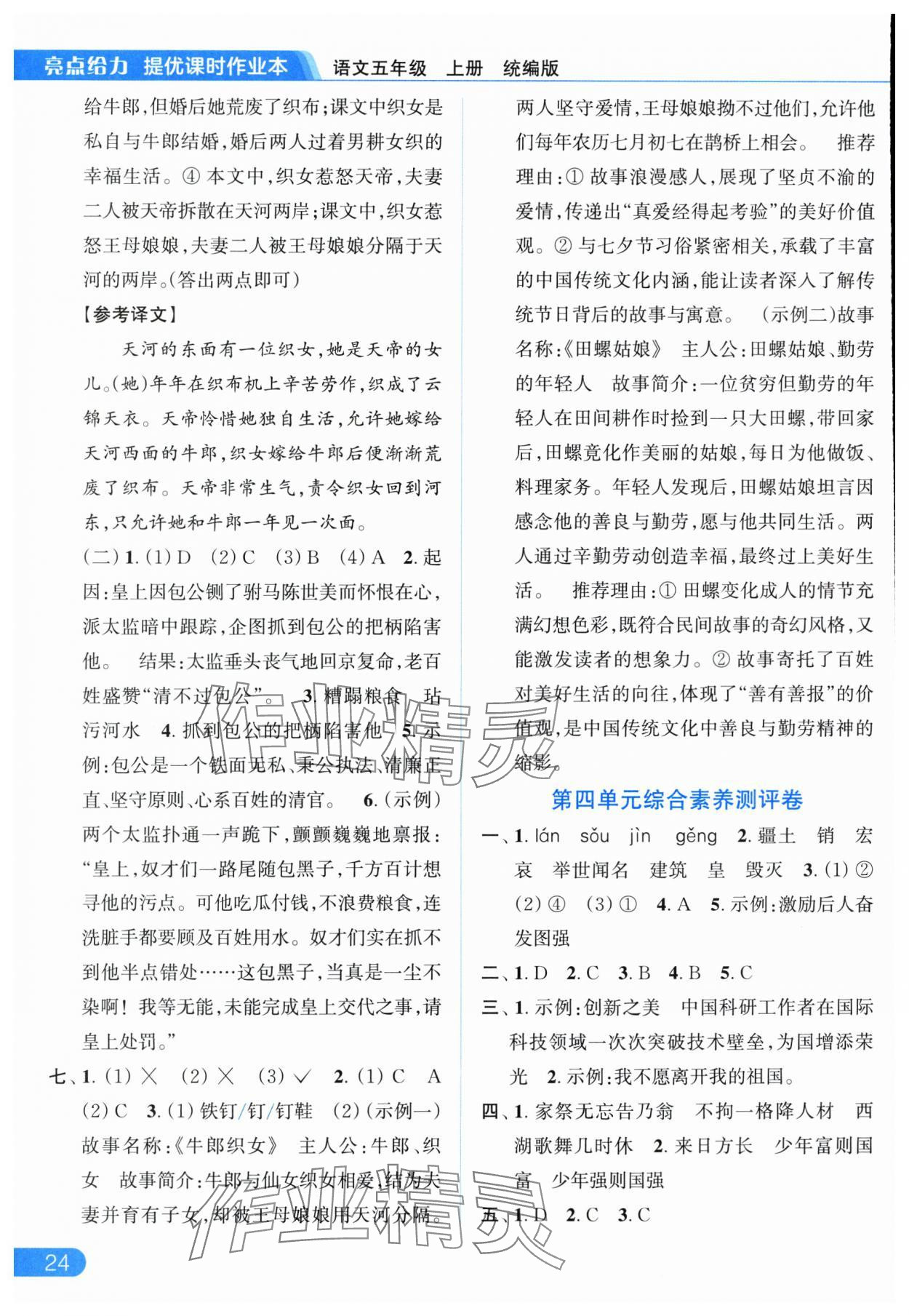 2025年亮点给力提优课时作业本五年级语文上册统编版参考答案第24页