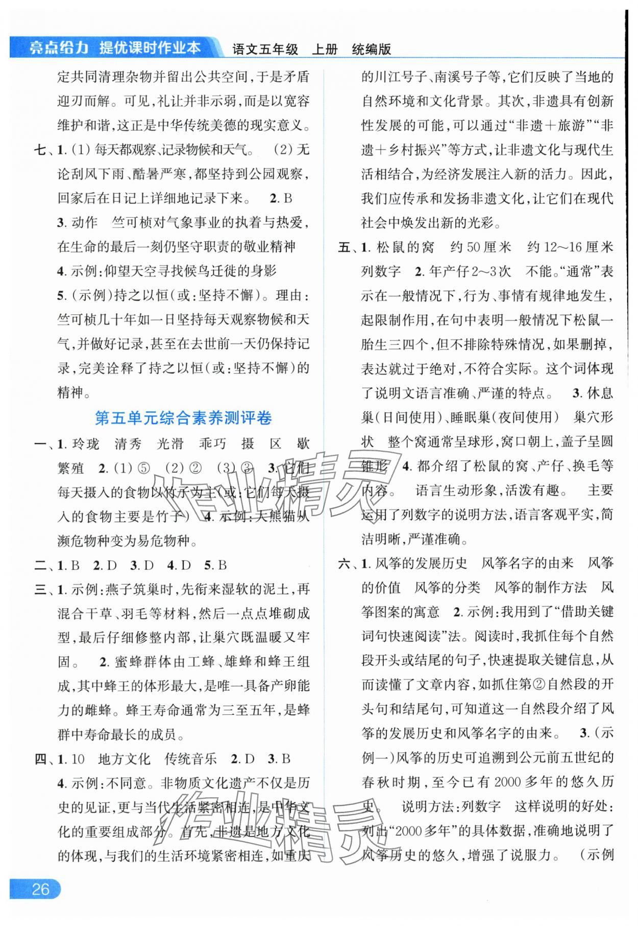 2025年亮点给力提优课时作业本五年级语文上册统编版参考答案第26页