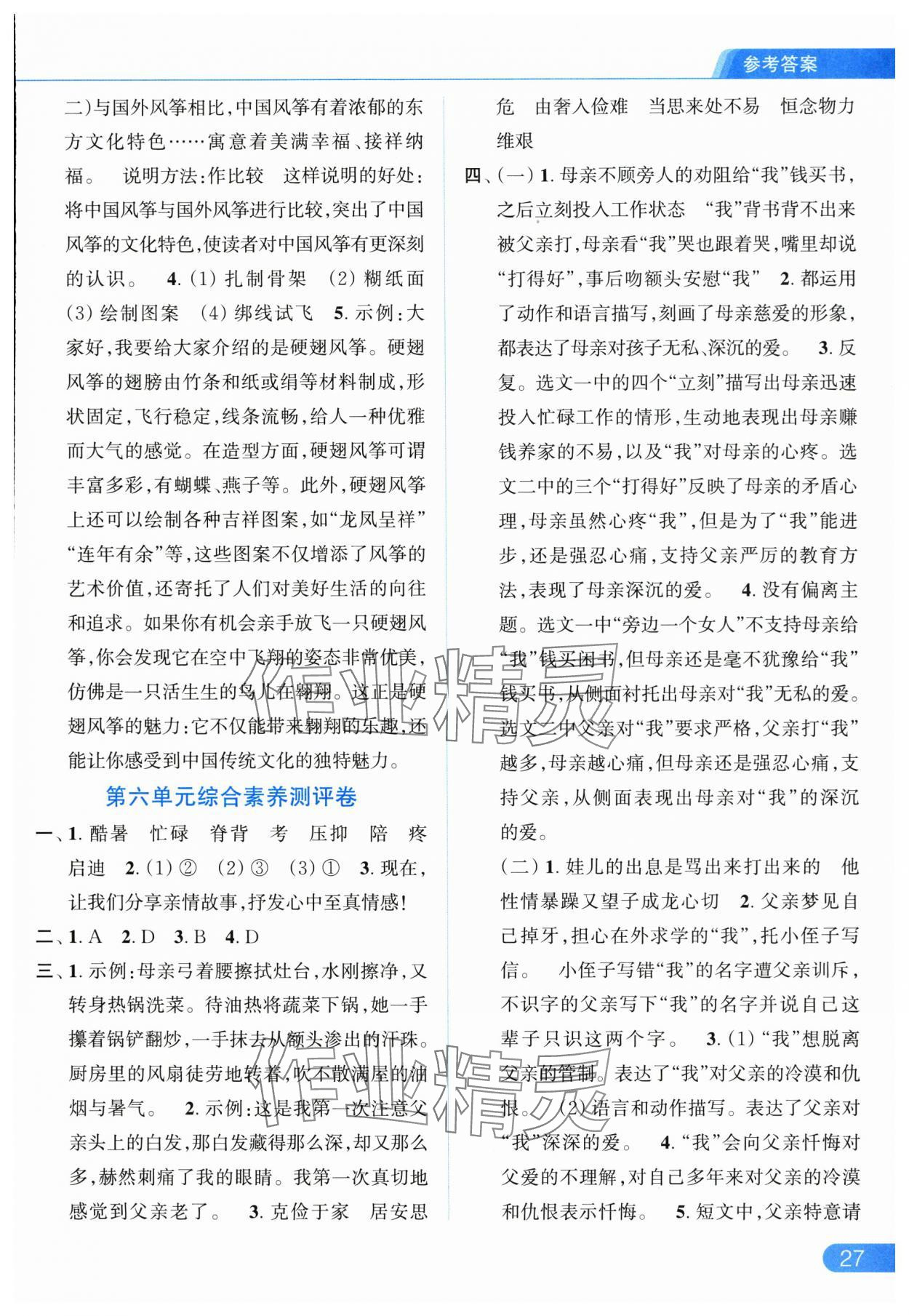 2025年亮点给力提优课时作业本五年级语文上册统编版参考答案第27页