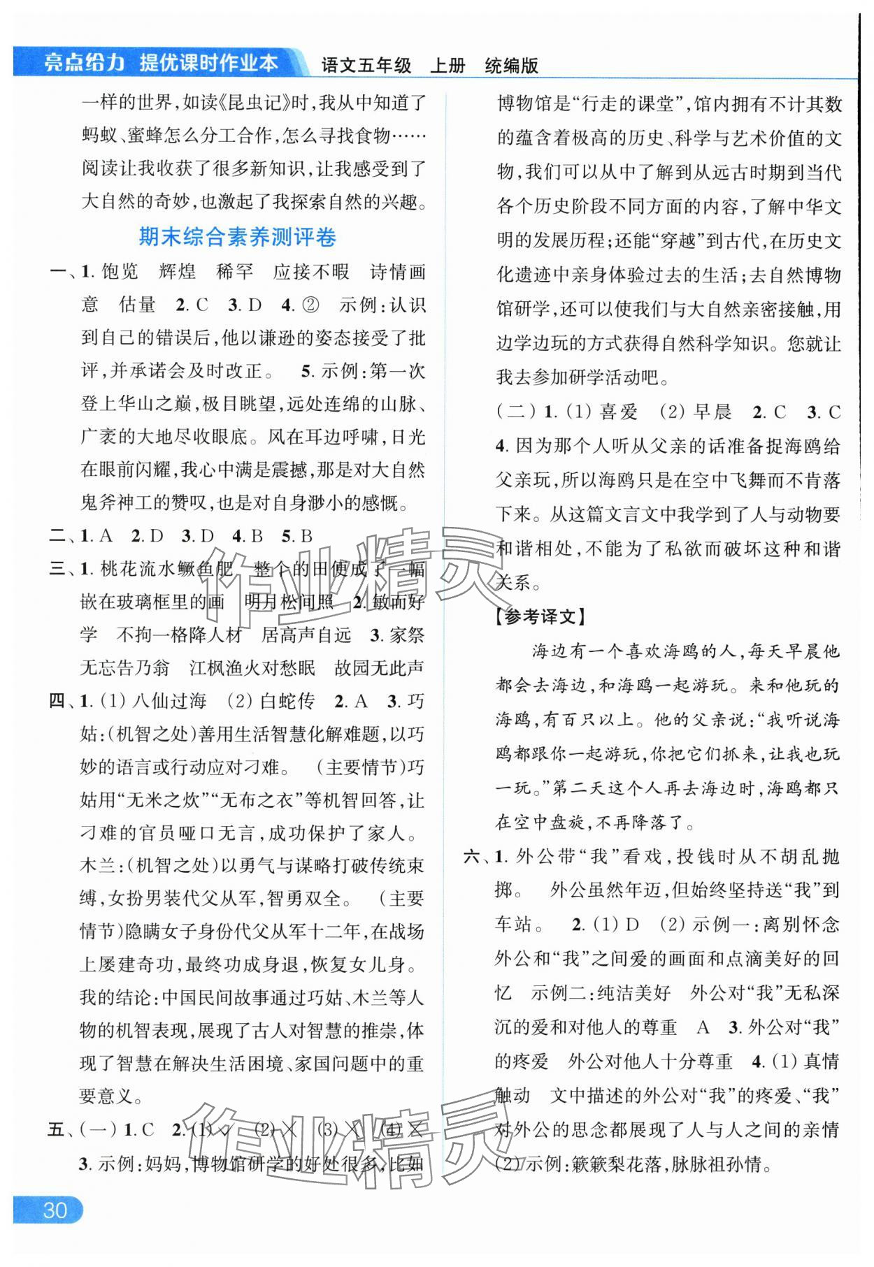 2025年亮点给力提优课时作业本五年级语文上册统编版参考答案第30页