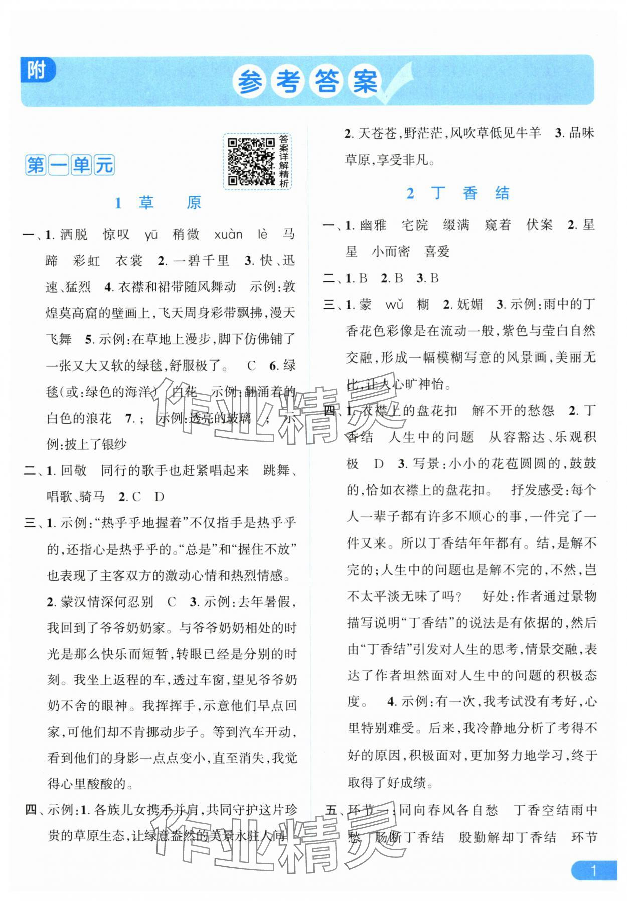 2025年亮点给力提优课时作业本六年级语文上册人教版参考答案第1页