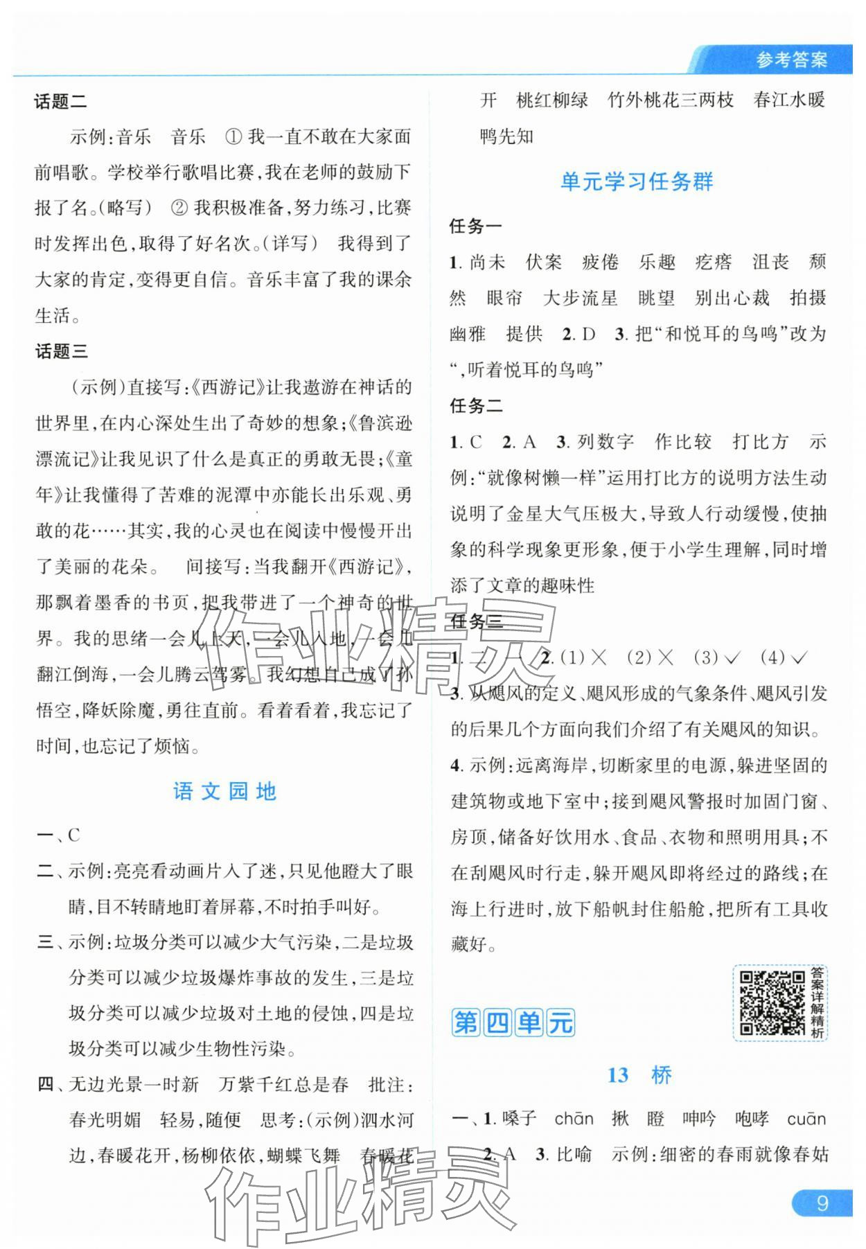 2025年亮点给力提优课时作业本六年级语文上册人教版参考答案第9页