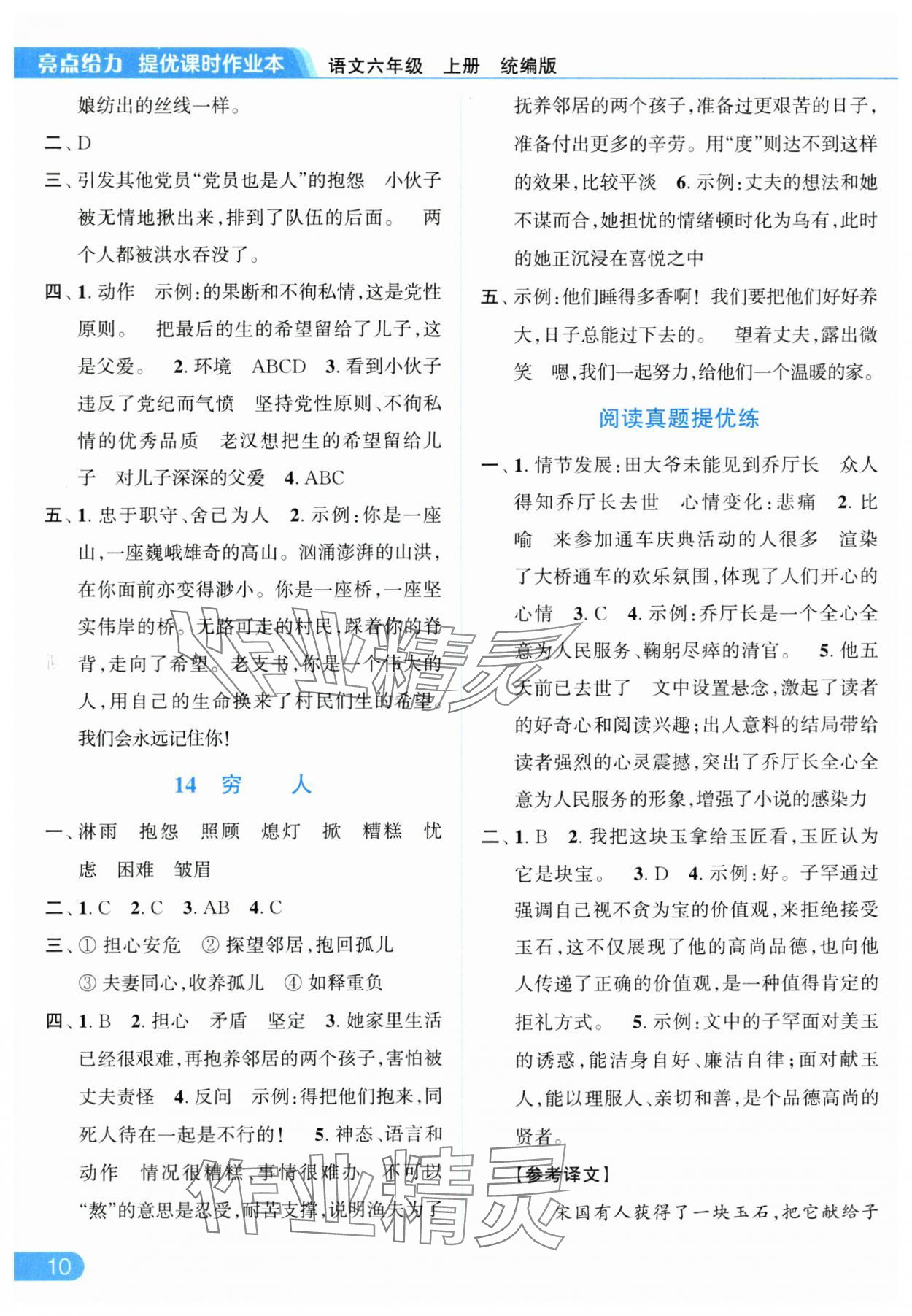 2025年亮点给力提优课时作业本六年级语文上册人教版参考答案第10页