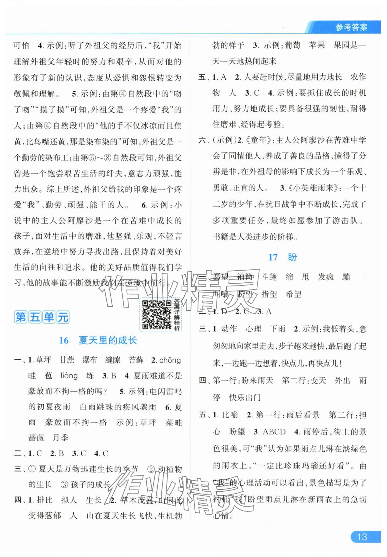 2025年亮点给力提优课时作业本六年级语文上册人教版参考答案第13页