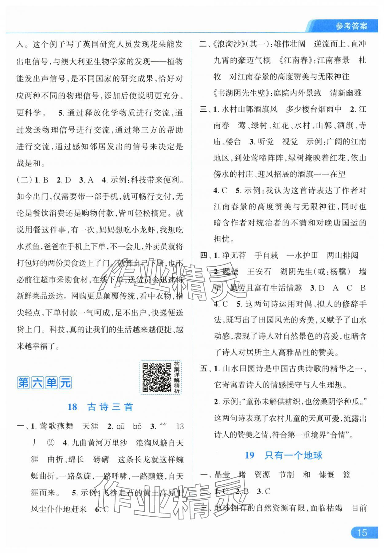 2025年亮点给力提优课时作业本六年级语文上册人教版参考答案第15页