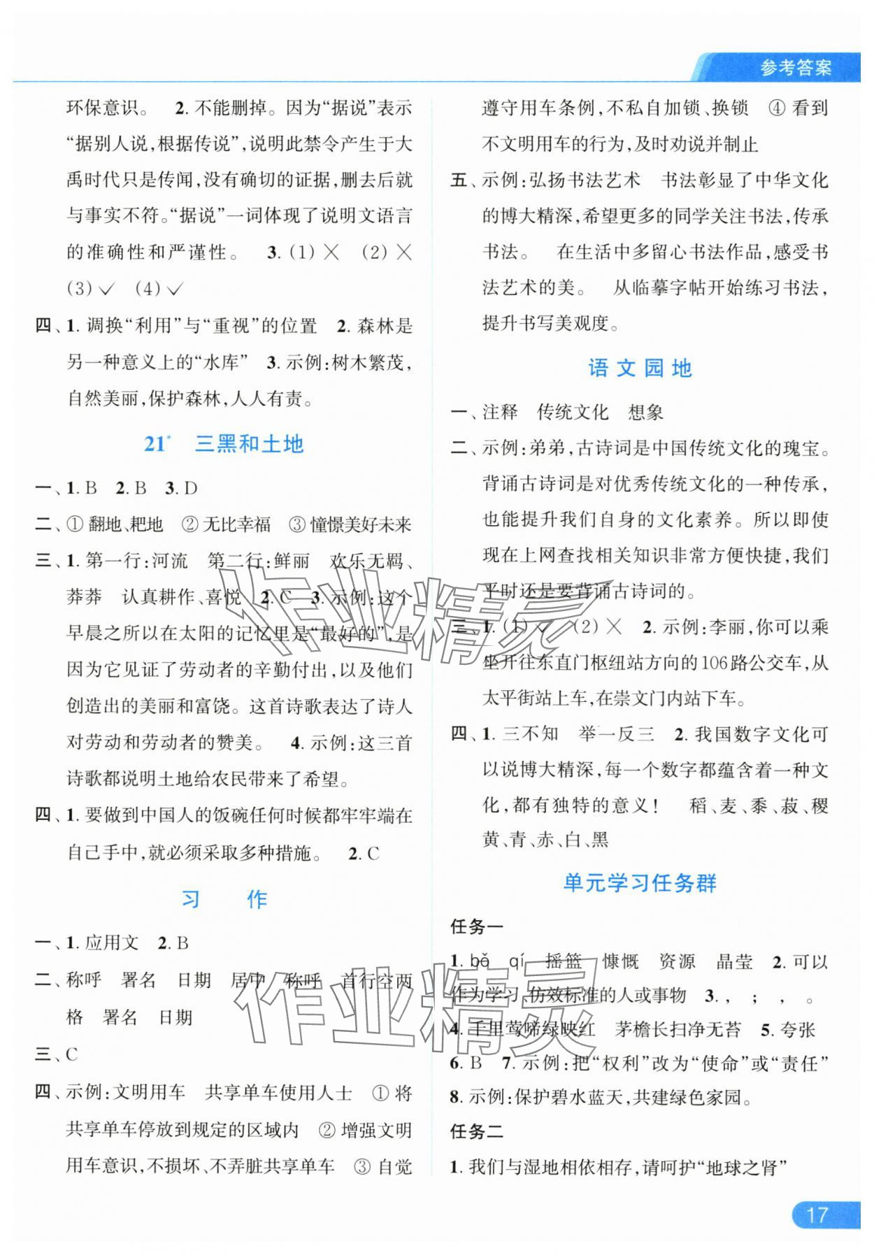 2025年亮点给力提优课时作业本六年级语文上册人教版参考答案第17页